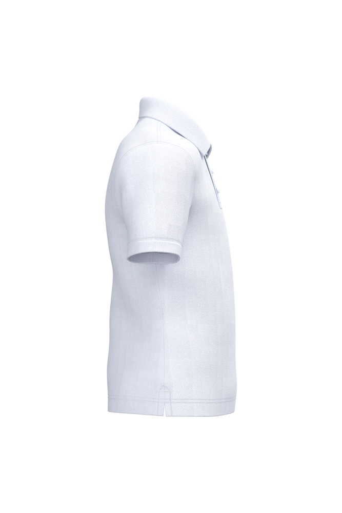 100% Cotone Piquè. Lavabile a 60°. Collo in costina e in contrasto di colore. 3 bottoni e spacchetti laterali. Cuciture a doppio ago.