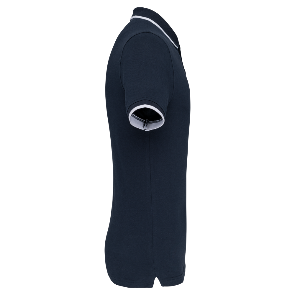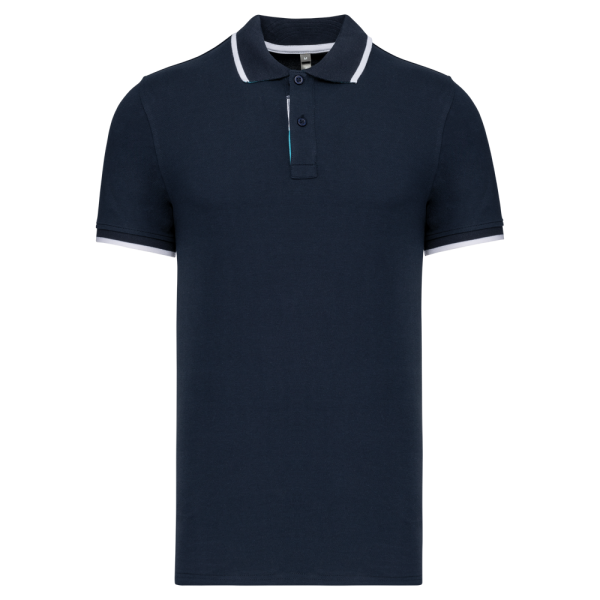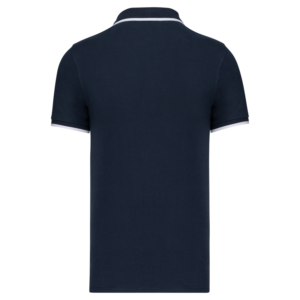 100% cotone piqué. 2 bottoni. Parte inferiore del colletto in contrasto di colore al collo e ai polsini con profili in contrasto (eccetto White/ Navy : nessun contrasto sotto il colletto, solo un sottile bordo rosso sotto l'abbottonatura). Nastrino in contrasto di colore al collo e agli spacchetti laterali. Cuciture a doppio ago. Collo "up collar" - può essere indossato sù o giù.