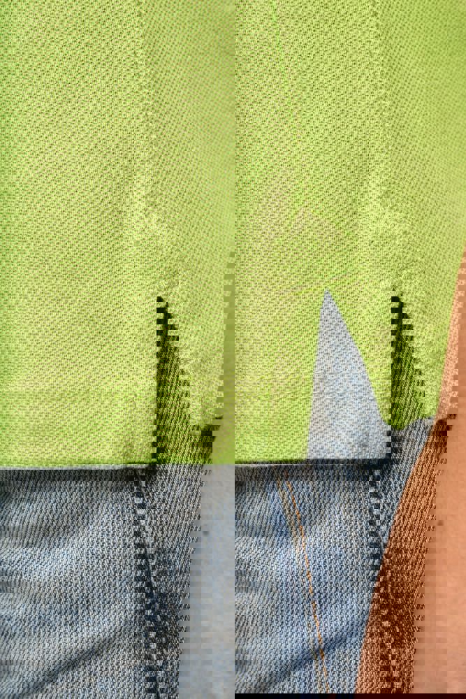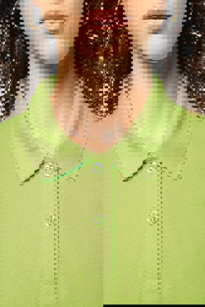 100% cotone piqué lavabile a 60°C. Nastrino di rinforzo al collo e spacchetti laterali in colore... altro