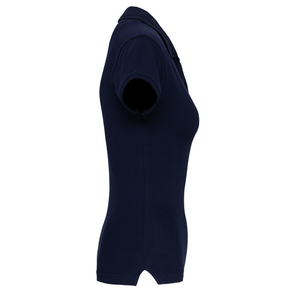 95% Cotone / 5% Elastan. Tessuto Piquè. Collo con bordi. Nastrino di rinforzo al collo. Spacchetti laterali e cuciture a doppio ago. Chiusura a 2 bottoni.