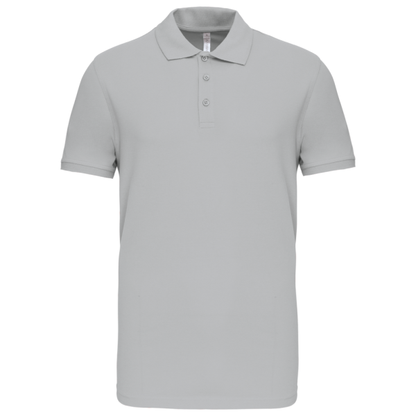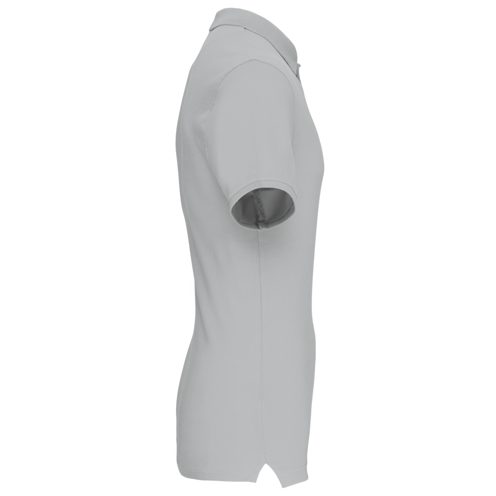 95% Cotone / 5% Elastan. Tessuto Piquè. Collo con bordi. Nastrino di rinforzo al collo. Spacchetti laterali e cuciture a doppio ago. Chiusura a 3 bottoni.