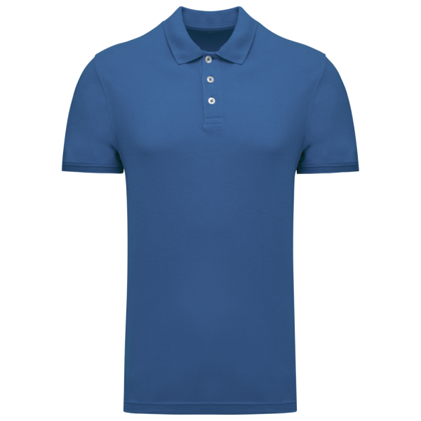 100% cotone. Cotone pettinato. Maglia piqué. Taglio dritto. Cuciture laterali. Prodotto in Portogallo. Collo e fondo manica a costine 1 x 1. Pattina con 3 bottoni perlati a contrasto su tutti i colori. Finitura con nastrino di rinforzo abbinato al materiale principale all'interno del colletto. Spalle arretrate. Spacchi laterali. Orlo rifinito con doppia impuntura. Nessuna etichetta con il marchio, solo una piccola etichetta a strappo con l'indicazione della taglia per una facile decorazione.