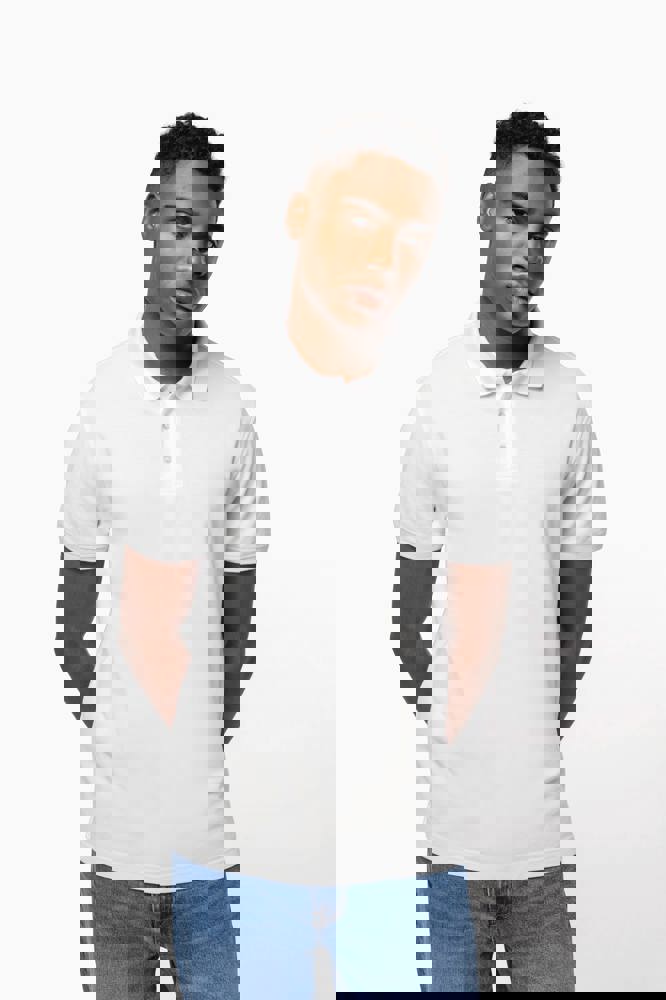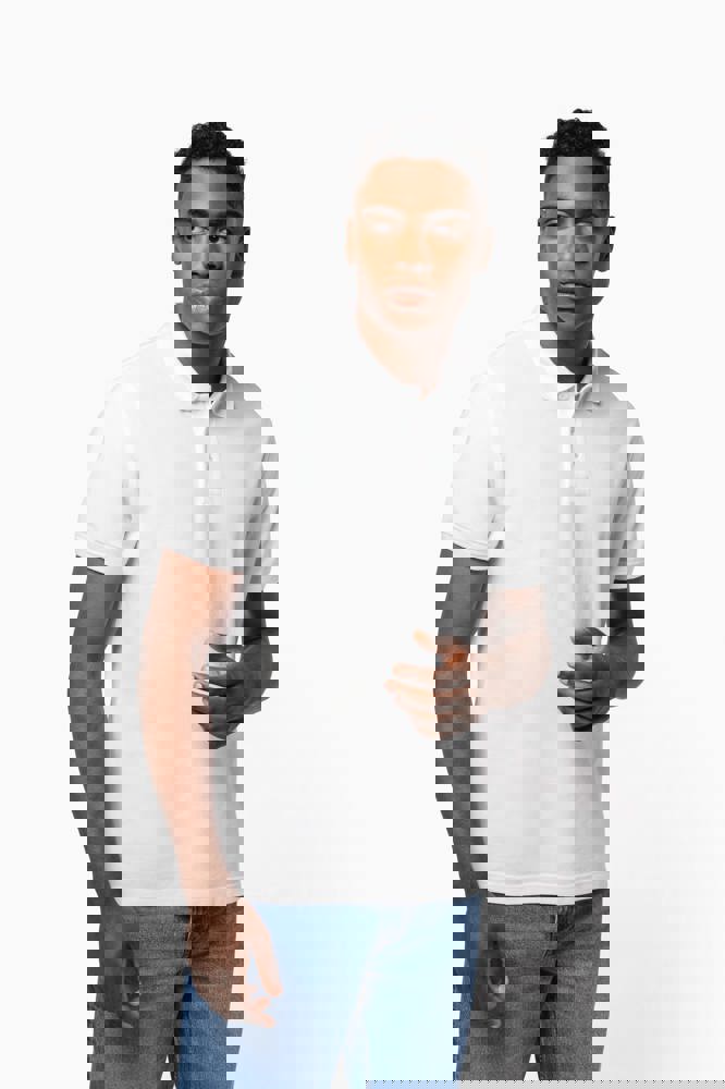 100% cotone. Cotone pettinato. Maglia piqué. Taglio dritto. Cuciture laterali. Prodotto in Portogallo. Collo e fondo manica a costine 1 x 1. Pattina con 3 bottoni perlati a contrasto su tutti i colori. Finitura con nastrino di rinforzo abbinato al materiale principale all'interno del colletto. Spalle arretrate. Spacchi laterali. Orlo rifinito con doppia impuntura. Nessuna etichetta con il marchio, solo una piccola etichetta a strappo con l'indicazione della taglia per una facile decorazione.