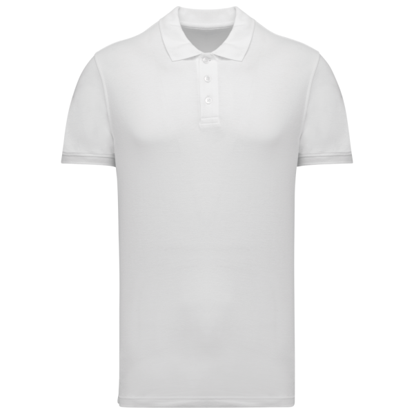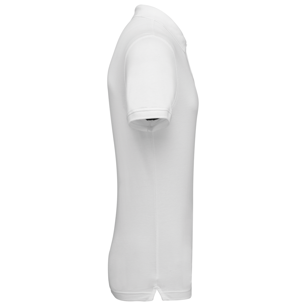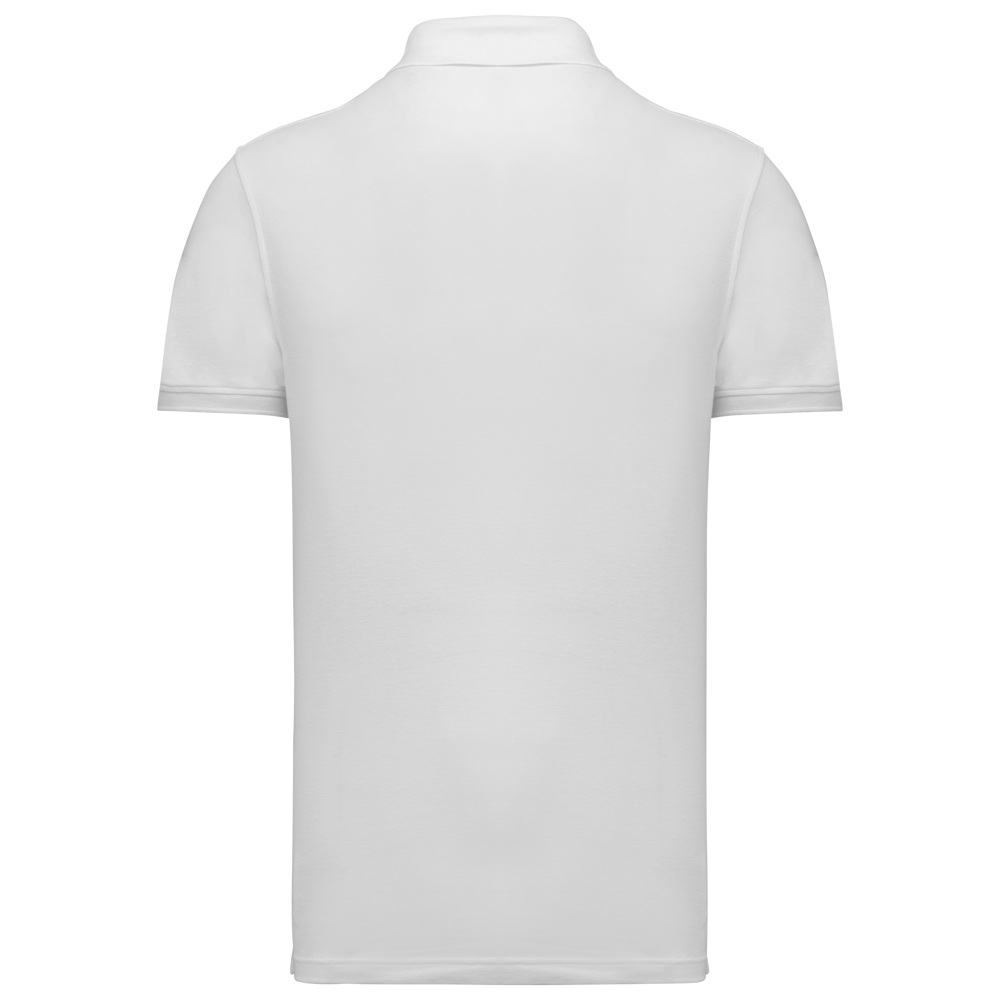 100% cotone. Cotone pettinato. Maglia piqué. Taglio dritto. Cuciture laterali. Prodotto in Portogallo. Collo e fondo manica a costine 1 x 1. Pattina con 3 bottoni perlati a contrasto su tutti i colori. Finitura con nastrino di rinforzo abbinato al materiale principale all'interno del colletto. Spalle arretrate. Spacchi laterali. Orlo rifinito con doppia impuntura. Nessuna etichetta con il marchio, solo una piccola etichetta a strappo con l'indicazione della taglia per una facile decorazione.