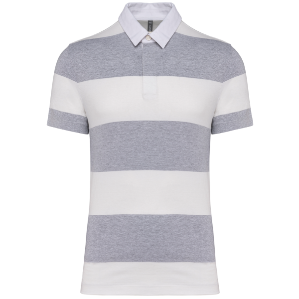 100% cotone. Cotone pettinato. Filato compatto. Tessuto in maglia jersey. Capo con lavaggio agli enzimi. Taglio dritto. Collo in twill di cotone a contrasto per tutti i colori. Asola invisibile sulla pattina. 3 bottoni in caucciù tono su tono. Rinforzi in silicone sulle spalle per una migliore vestibilità. Finitura a doppia impuntura a fondo manica e fondo capo. Due spacchetti laterali con nastrino di rinforzo nel tessuto principale a contrasto. Etichetta con il nome del marchio sul collo, unitamente a una piccola etichetta con l'indicazione della taglia per semplificare la personalizzazione.