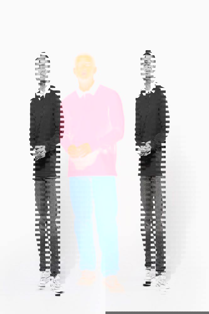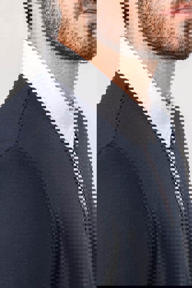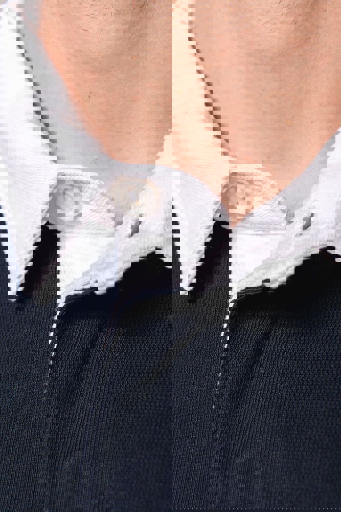 100% cotone. Cotone pettinato jersey preristretto. Colletto in twill di cotone bianco a contrasto (tranne i colori Red e Dark Grey con colletto nero). Pattina con 3 bottoni. Polsini a costine 1x1. Nastrino di rinforzo a motivo spigato all'interno del colletto e spacchetti laterali.