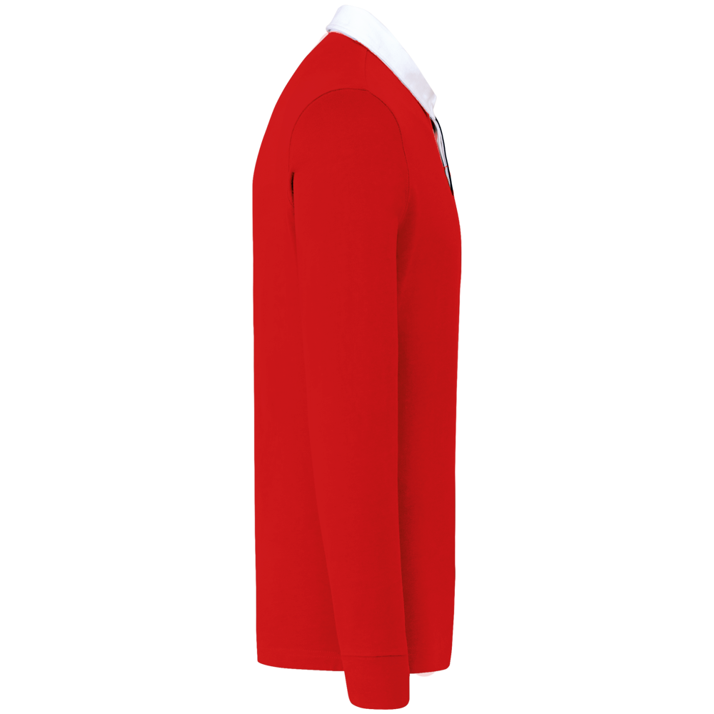 100% cotone. Cotone pettinato jersey preristretto. Colletto in twill di cotone bianco a contrasto (tranne i colori Red e Dark Grey con colletto nero). Pattina con 3 bottoni. Polsini a costine 1x1. Nastrino di rinforzo a motivo spigato all'interno del colletto e spacchetti laterali.