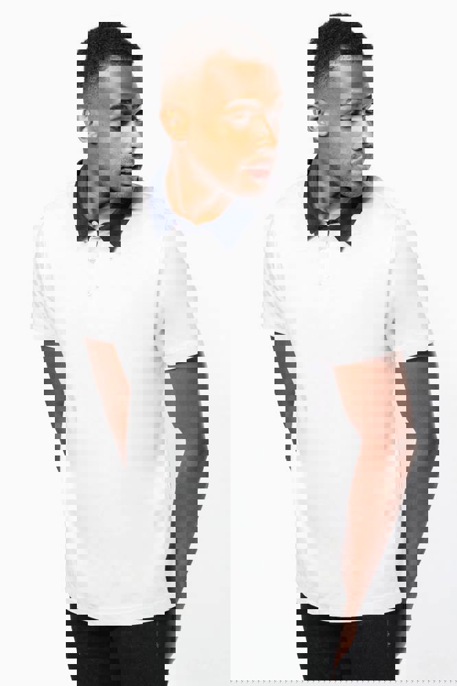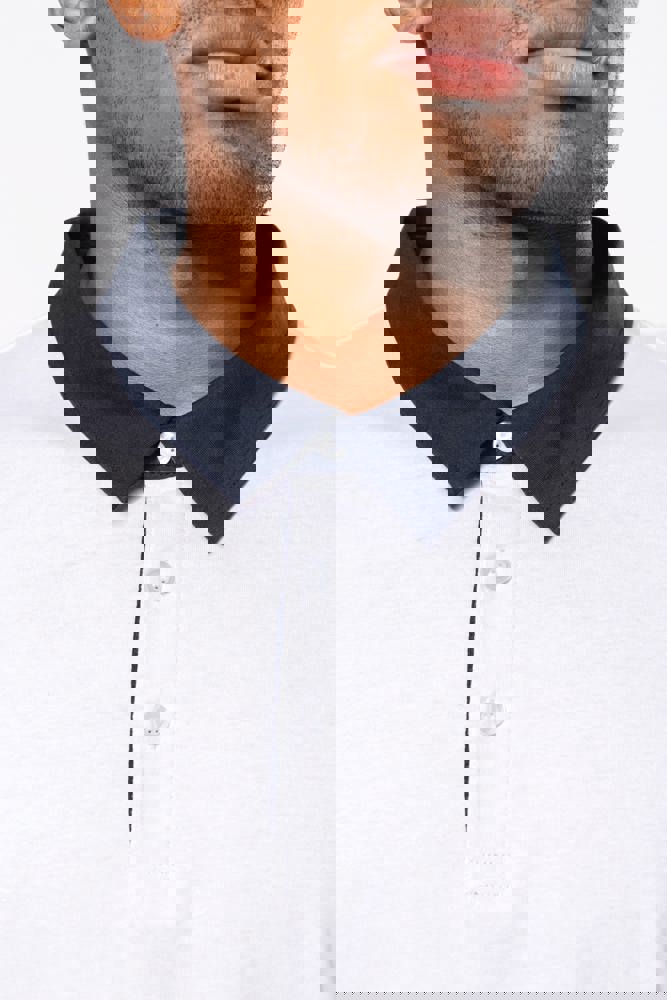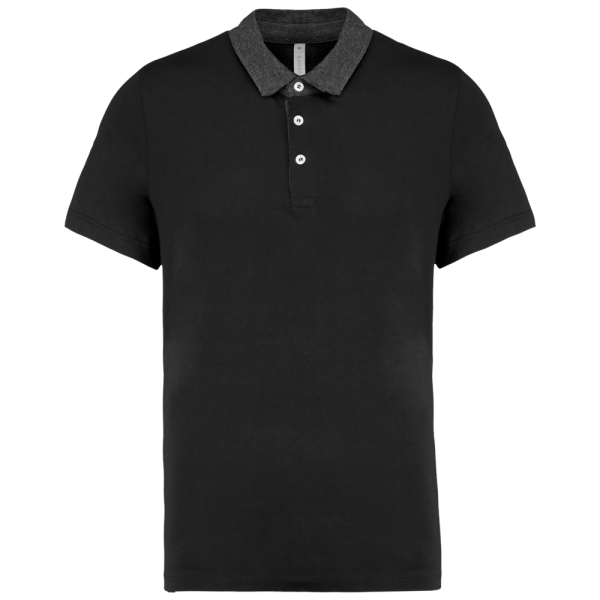 100% cotone (Dark Grey Heather: 65% poliestere / 35% cotone). Cotone pettinato con lavaggio agli enzimi. Collo camicia e interno pattina a contrasto con 3 bottoni bianco madreperlato. Finitura a doppia impuntura a fondo manica e fondo capo.
