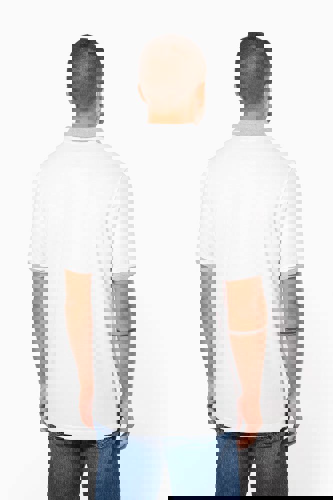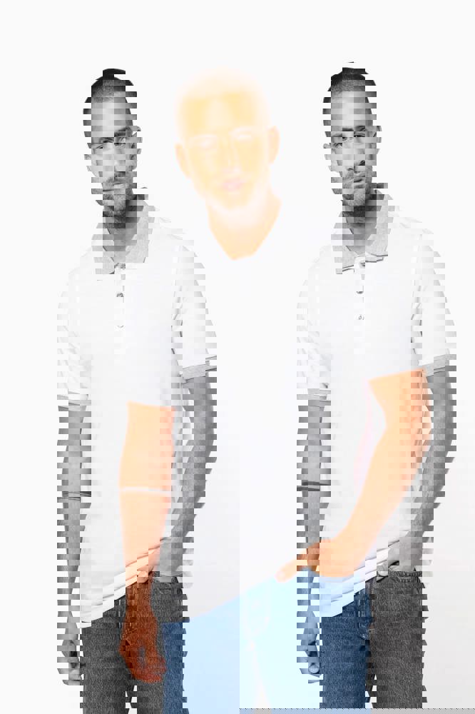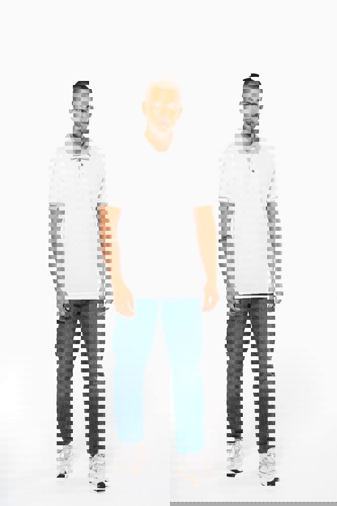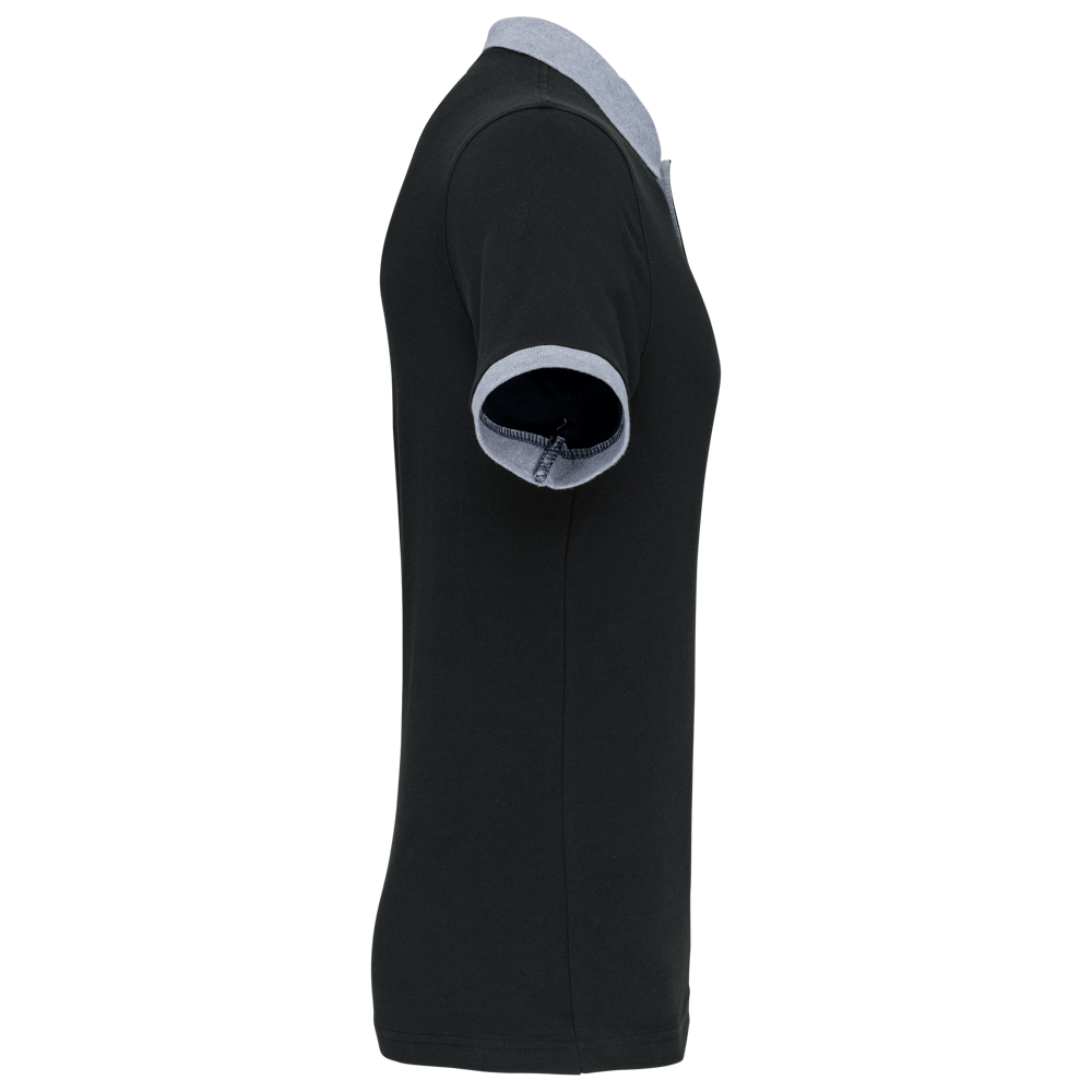100% cotone piqué preristretto (Oxford Grey: 90% cotone / 10% viscosa). Collo e fondo manica a costine a contrasto. Nastrino di rinforzo a contrasto sul collo. Pattina interna a contrasto con 3 bottoni. Finitura a doppia impuntura a fondo capo.