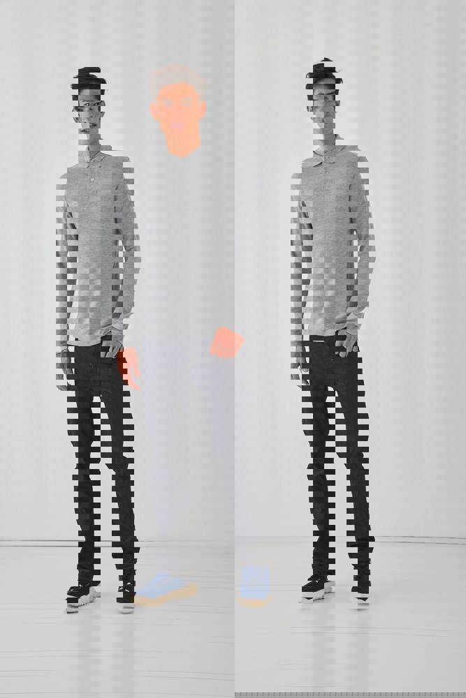 100% cotone pre-ristretto a filo di ordito continuo ring-spun (tranne Heather Grey: 90% cotone pre-ristretto a filo di ordito continuo / 10% viscosa). Piqué. Colletto a costine 1x1 con nastrino di rinforzo. Pattina rinforzata, con due bottoni tono su tono. Cuciture laterali.