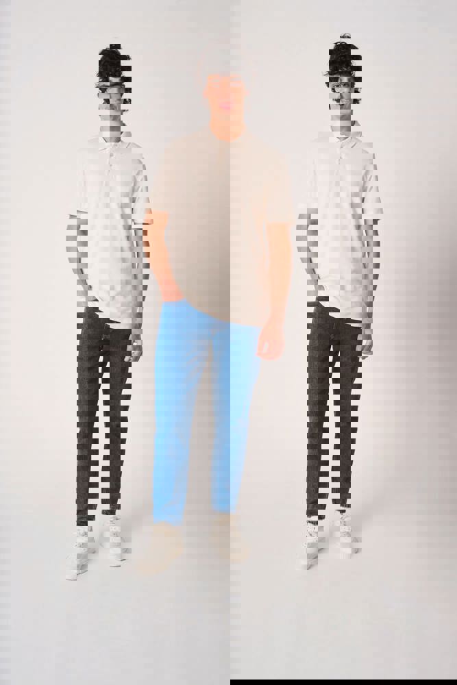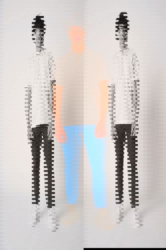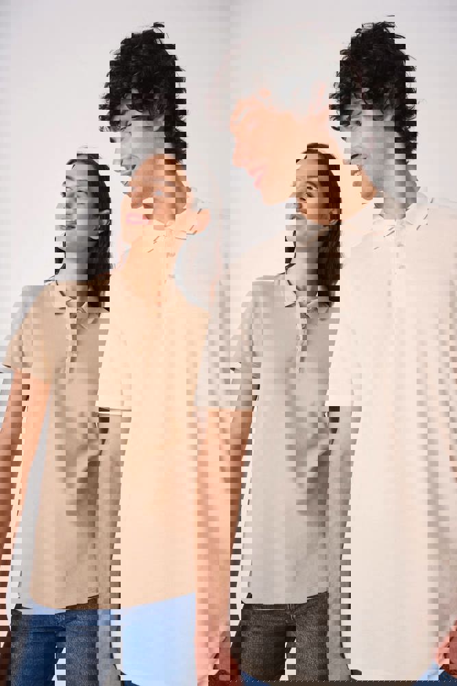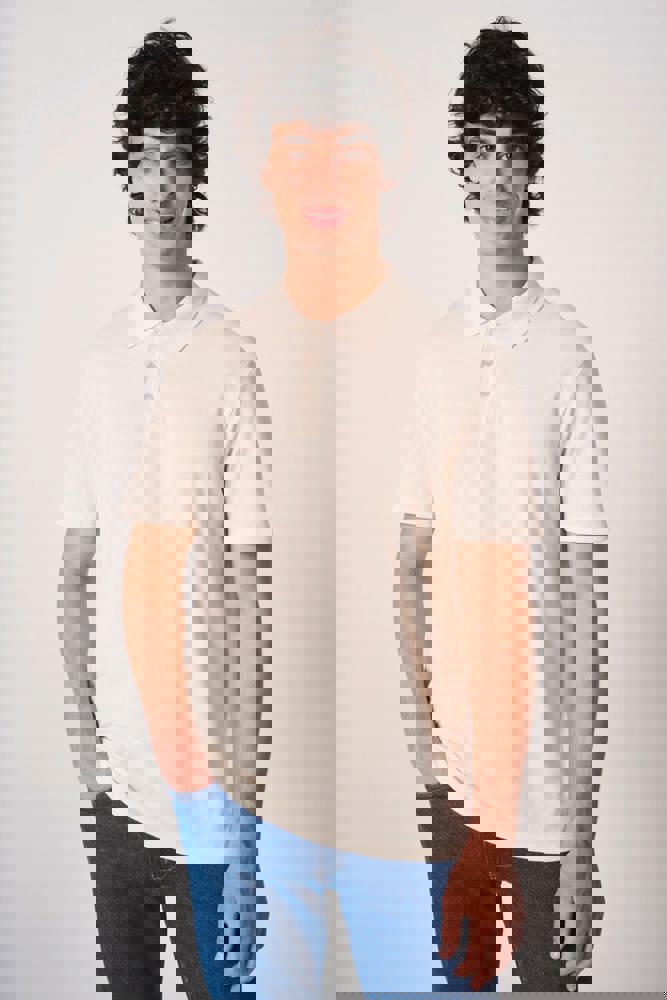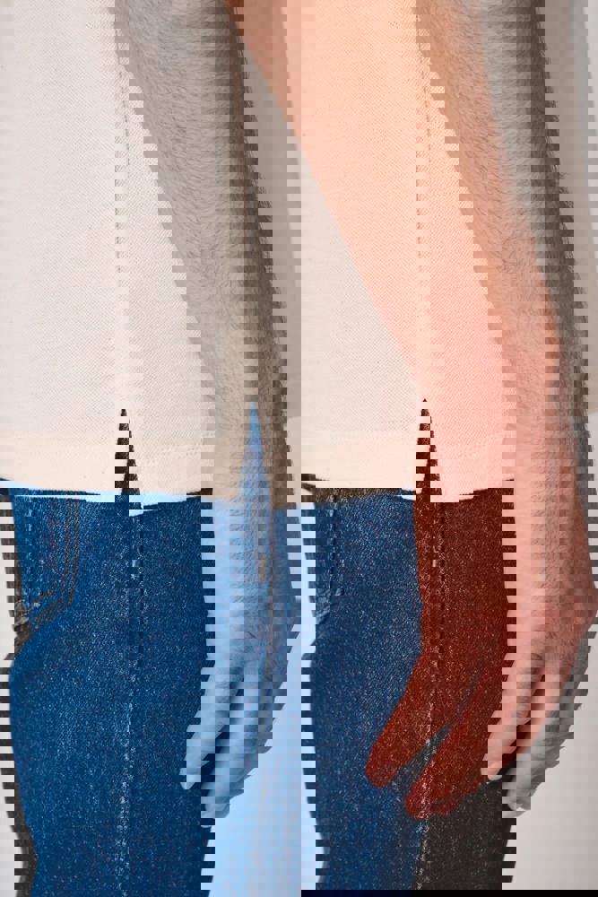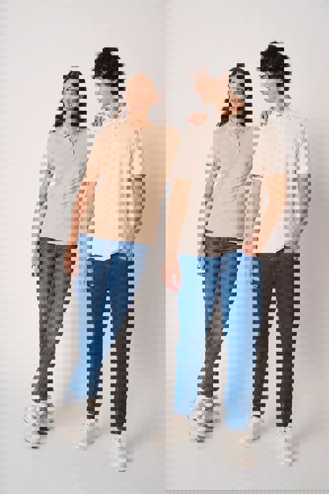 Colori uniti: 100% cotone. Colore Ideal Ash Heather: 99% cotone / 1% viscosa. Colore Ideal Oxford Grey: 90% cotone / 10% viscosa. Maglia piqué. Taglio dritto. Colletto in maglia a costine 1x1. Pattina con 3 bottoni tono su tono. Nastro di rinforzo interno al collo tono su tono. Spacchetti laterali. Orli fondo maniche e fondo capo con finitura a doppio ago. Etichetta del marchio staccabile.