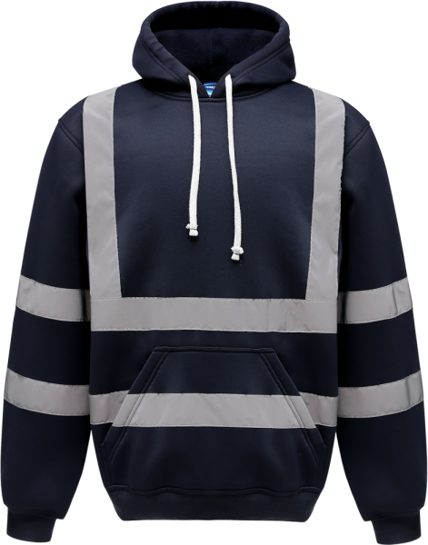 100% poliestere anti-pilling. 2 fasce riflettenti (larghezza 5 cm) intorno al corpo e alle braccia. Una "bretella" riflettente su ogni spalla. Nastrino di rinforzo sul collo. Cappuccio integrato (nel prolungamento del collo) con coulisse. Maniche a giro. Tasca a canguro sul davanti. Fondo manica e fondo capo a costine. Finitura a doppia impuntura sul collo, a fondo manica e fondo capo. Norma EN ISO 20471 Classe 3 : Hi-Vis Yellow, Hi-Vis Orange, Hi-Vis yellow/Navy, Hi-Vis Orange/Navy.