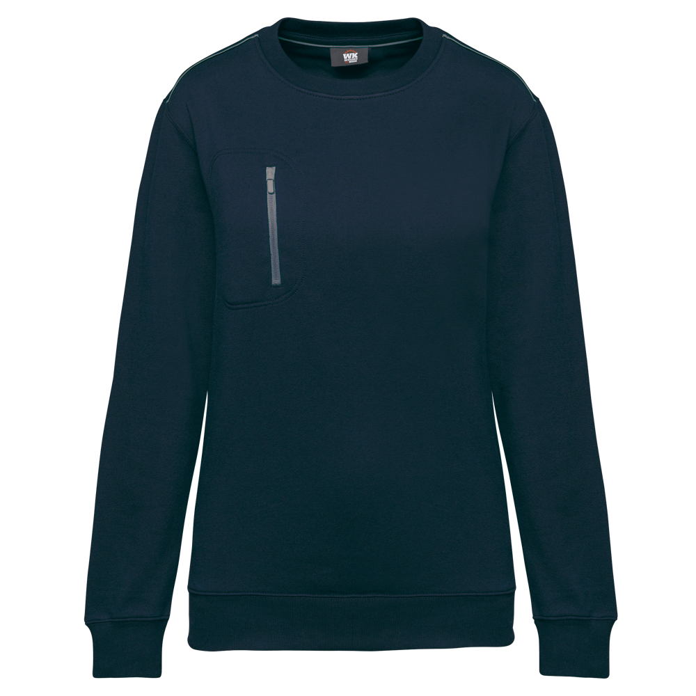 70% poliestere / 30% cotone. Cotone pettinato. Tessuto felpato LSF (Low Shrinkage Fleece) 3 fili. Filato Vortex. Lavabile a 60°C. Taglio dritto. Collo tondo con costine 1x1 e nastrino di rinforzo tono su tono con dettaglio a contrasto. Finitura a mezzaluna nella parte posteriore del collo che facilita la personalizzazione della marca all'interno. Dettaglio a contrasto sulle spalle. Taschino sul petto lato destro con zip a contrasto in nylon e cursore a contrasto. Finitura a doppia impuntura tono su tono sul bordo della tasca. Etichetta con il nome del marchio staccabile.
