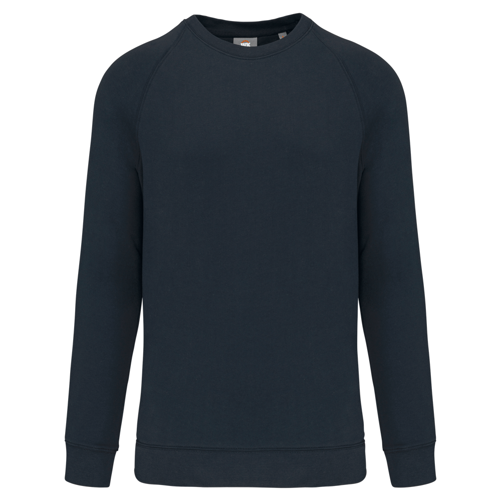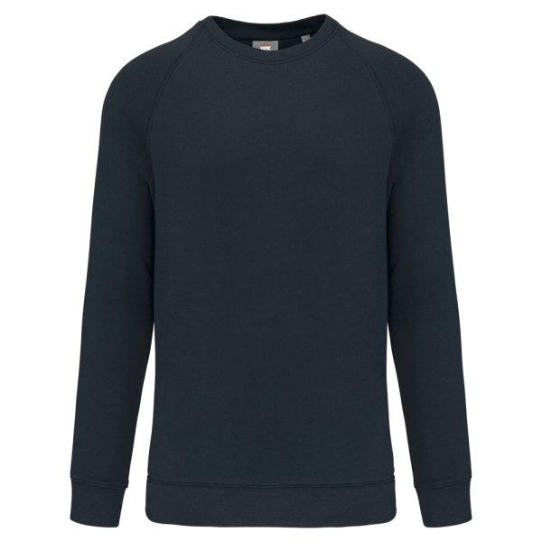 100% cotone. Felpa garzata a 3 fili. Lavaggio a 60°. Taglio dritto. Maniche raglan. Nastrino di rinforzo interno al collo con motivo spigato tono su tono. Girocollo. Struttura costina 1x1 tubolare per una migliore finitura su collo, fondo manica e fondo capo. Inserto a mezza luna nel collo. Etichette in cotone.