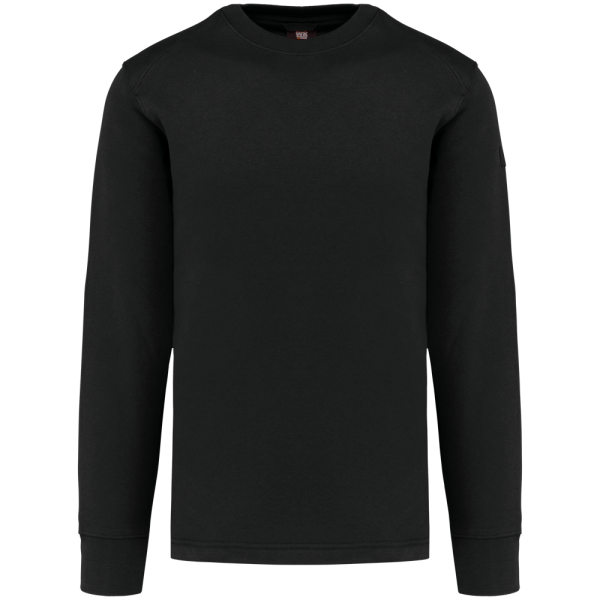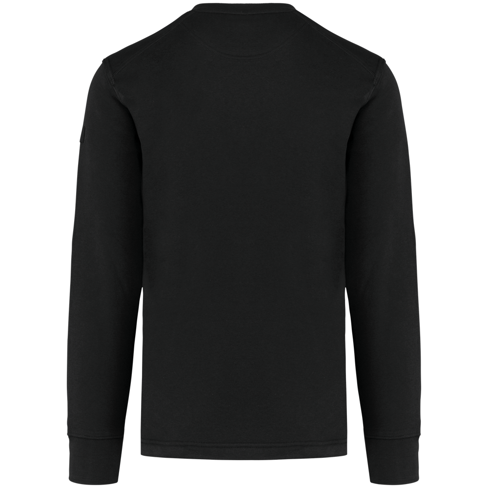80% cotone / 20% poliestere. Tessuto felpato a 3 fili con trattamento LSF (Low Shrinkage Fleece). Lavabile a 60 °C. Colletto a polo e fondo manica a costine. Tasca con zip invisibile lato destro. Rinforzi su spalle e gomiti per una maggiore resistenza. Porta penna sulla manica sinistra. Finitura a mezzaluna sul dorso. Asola per appendere il capo cucita al collo. Finitura a doppia impuntura a fondo capo e parte posteriore più lunga per un maggior comfort.