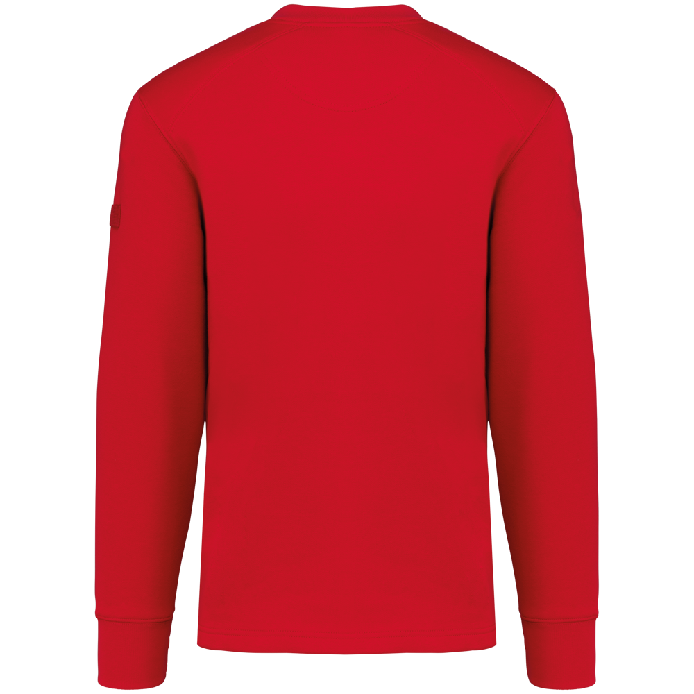 80% cotone / 20% poliestere. Tessuto felpato a 3 fili con trattamento LSF (Low Shrinkage Fleece). Lavabile a 60 °C. Colletto a polo e fondo manica a costine. Tasca con zip invisibile lato destro. Rinforzi su spalle e gomiti per una maggiore resistenza. Porta penna sulla manica sinistra. Finitura a mezzaluna sul dorso. Asola per appendere il capo cucita al collo. Finitura a doppia impuntura a fondo capo e parte posteriore più lunga per un maggior comfort.