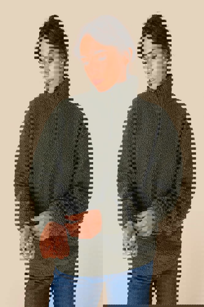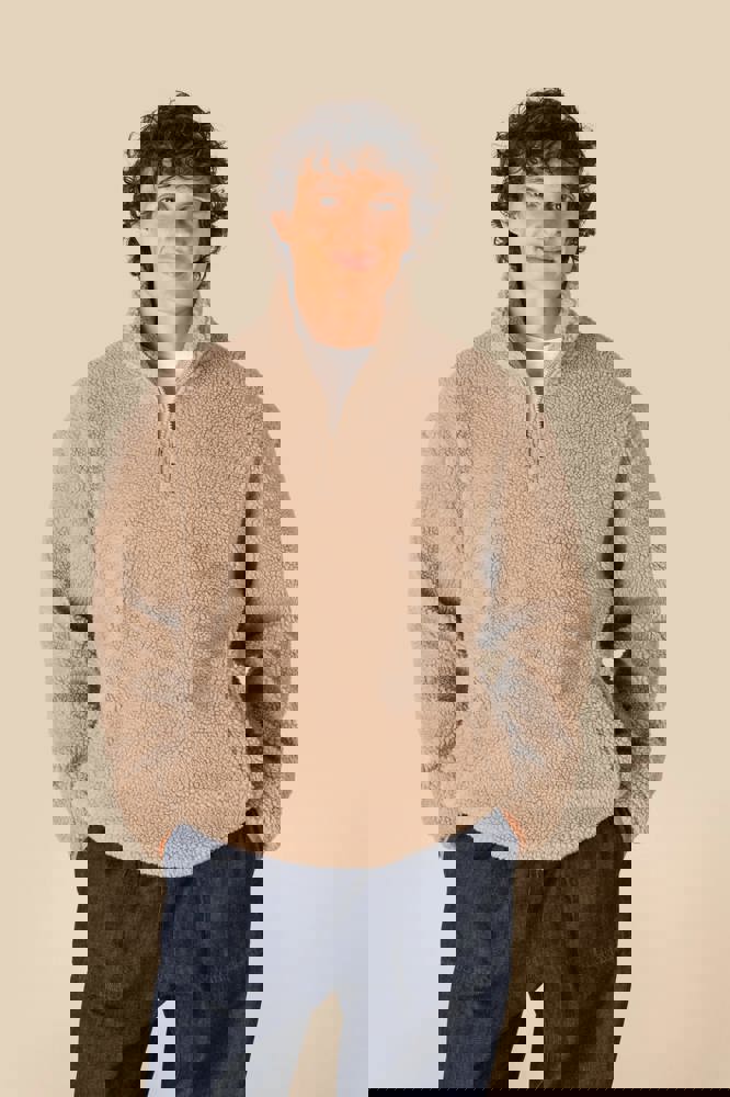 SP403 - Felpa unisex 1/4 zip in sherpa con spalle spioventi