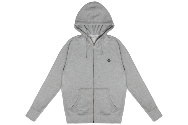 83% cotone / 17% poliestere. Tessuto spazzolato in poliestere e cotone manopesca. Logo Timberland® ad albero ricamato sul petto. Taglio dritto. Fondo manica e fondo capo a costine. Tasche a marsupio.