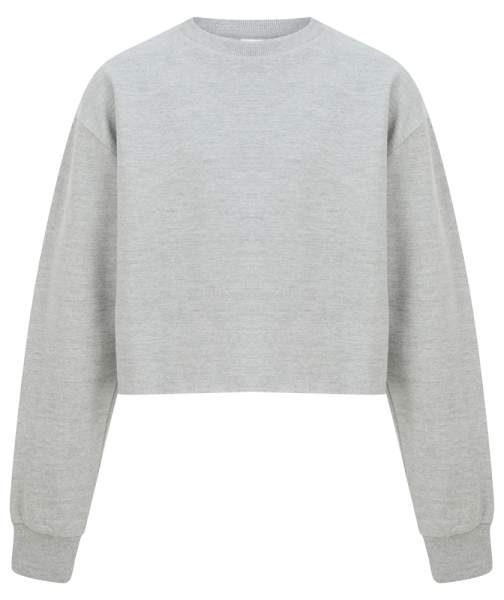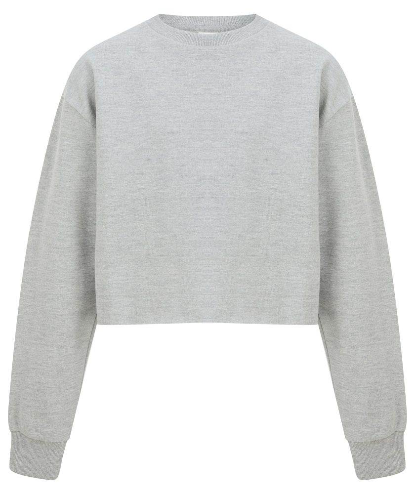 Black: 80% cotone / 20% poliestere. Heather grey: 70% cotone / 30% viscosa. Interno in pile spazzolato. Felpa oversize con orlo grezzo accorciato. Maniche con risvolto. Spalle cadenti. Etichetta staccabile.