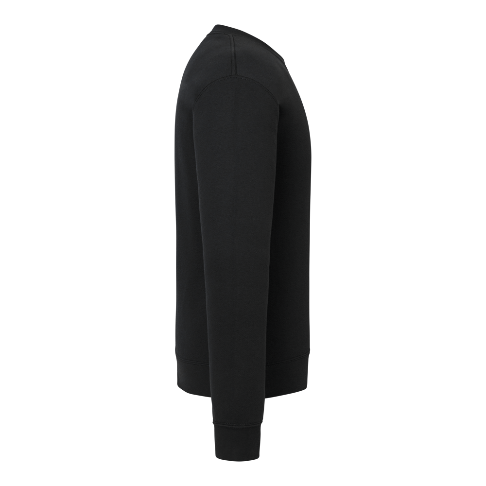 70% cotone / 30% poliestere. Taglio classico. Maniche incassate. Polsini e cintura a costine 1x1.