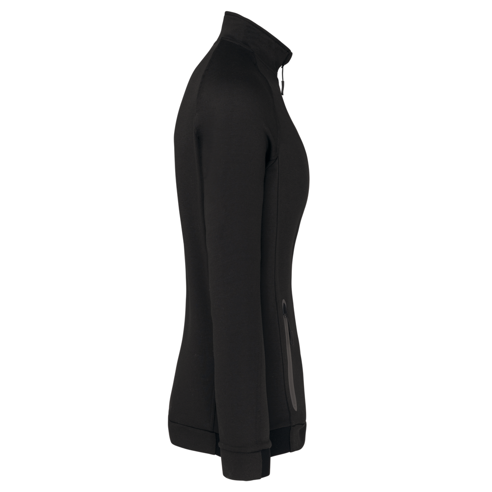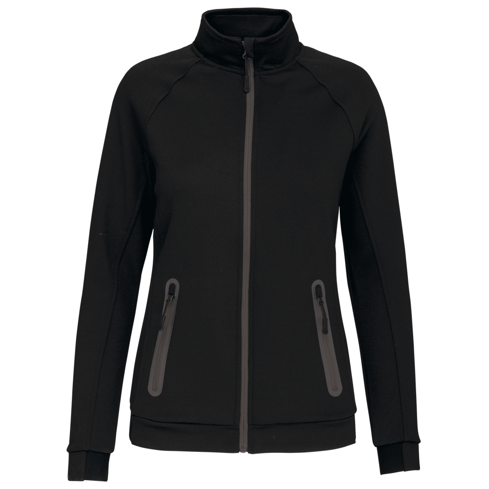94% poliestere / 6% elastan (79% poliestere / 15% viscosa / 6% elastan per il colore melange). Taglio aderente. Materiale ultra comodo. Chiusura con zip. 2 tasche con zip sul davanti e finitura termosaldata. Fondo manica e fondo capo stretti con una parte elasticizzata Black su tutti i colori e Dark Grey sull'erica di Ash Heather (anche le chiusure). Ideale da indossare con i pantaloni tuta PA1009 per uno stile totalmente "urban apparel".
