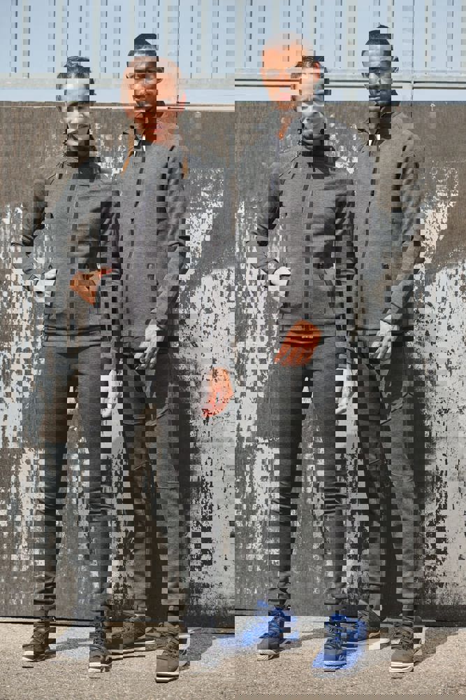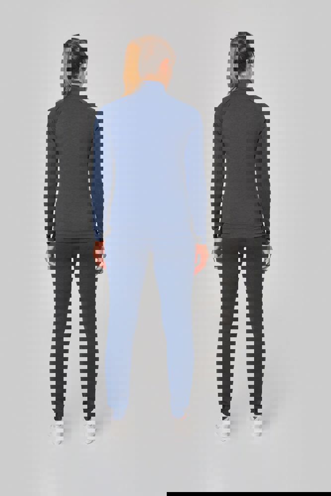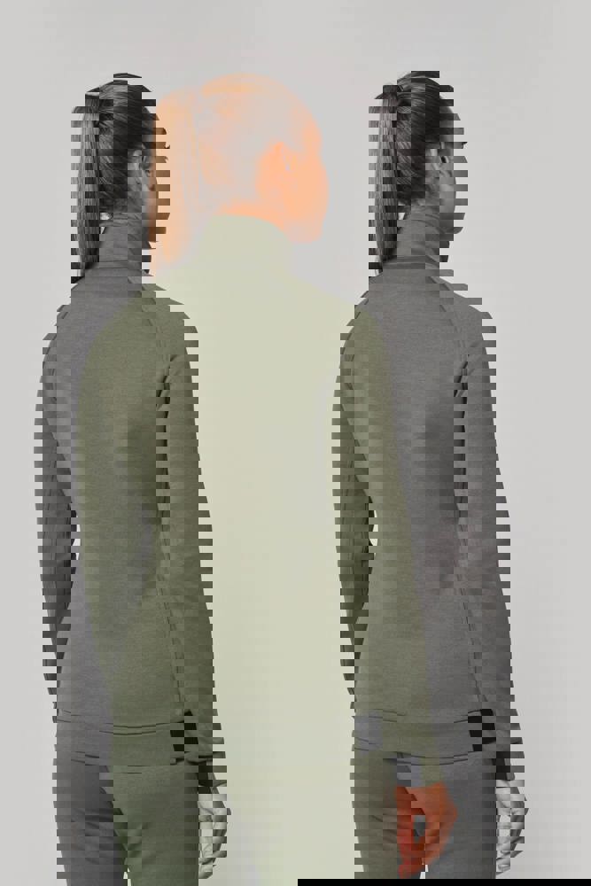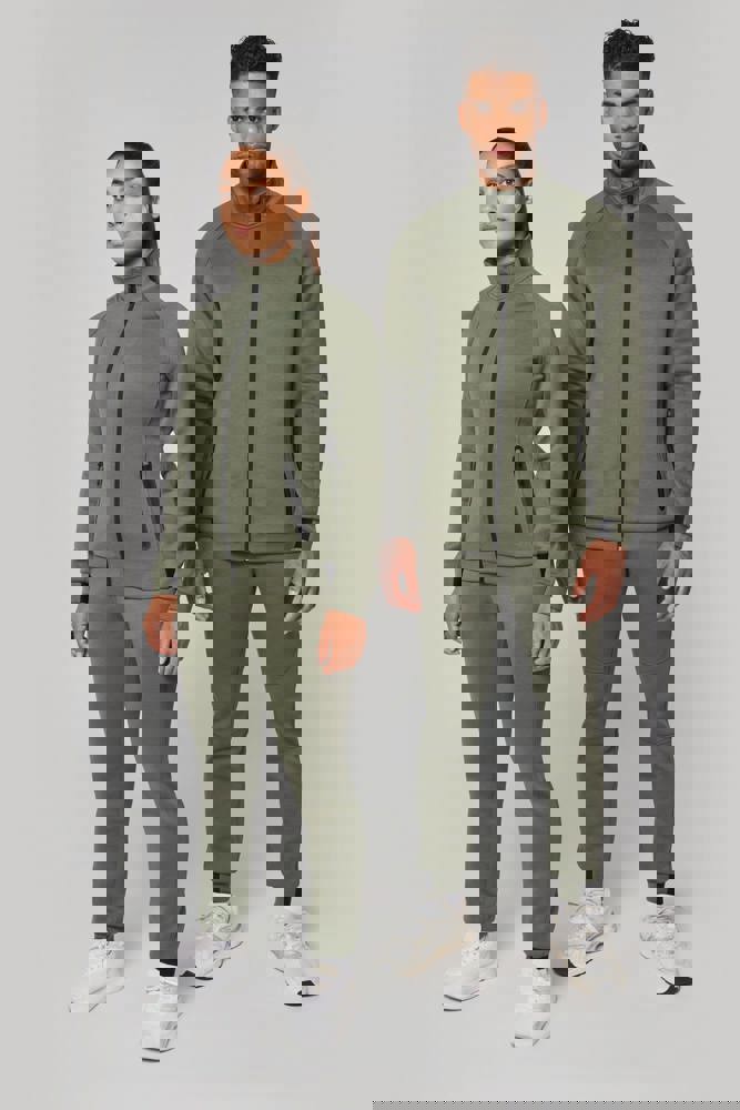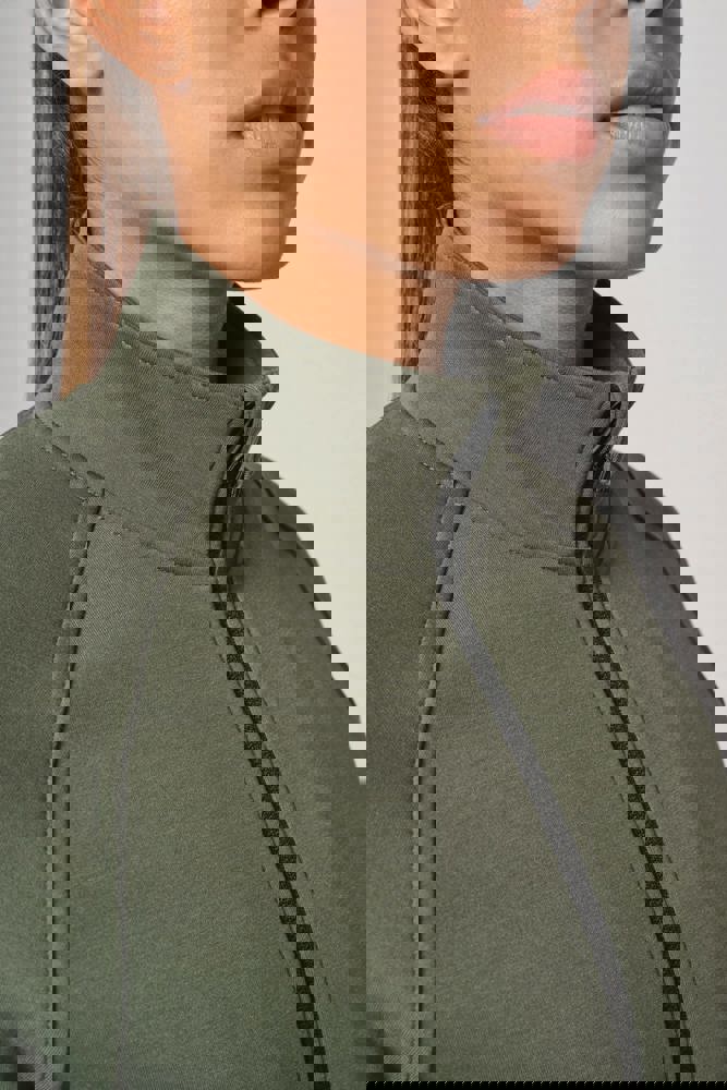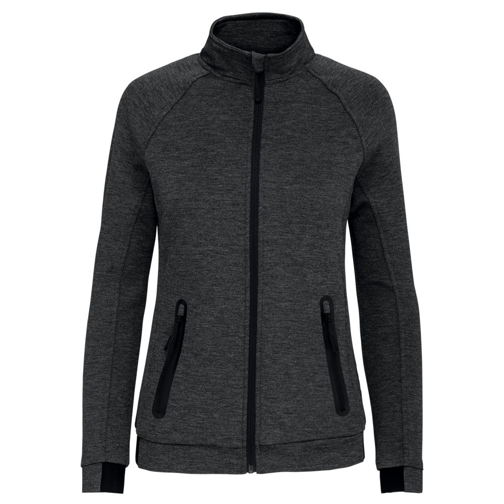 94% poliestere / 6% elastan (79% poliestere / 15% viscosa / 6% elastan per il colore melange). Taglio aderente. Materiale ultra comodo. Chiusura con zip. 2 tasche con zip sul davanti e finitura termosaldata. Fondo manica e fondo capo stretti con una parte elasticizzata Black su tutti i colori e Dark Grey sull'erica di Ash Heather (anche le chiusure). Ideale da indossare con i pantaloni tuta PA1009 per uno stile totalmente "urban apparel".