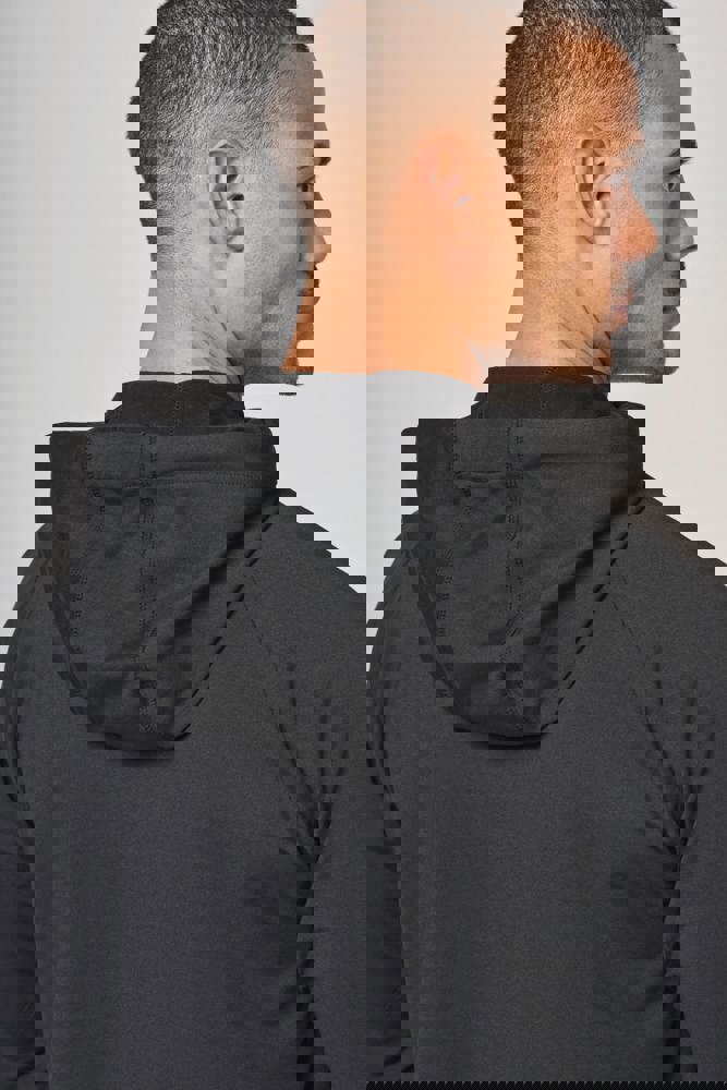 90% poliestere / 10% elastan. Tessuto jersey garzato ultra morbido. Maniche raglan. 2 tasche... altro
