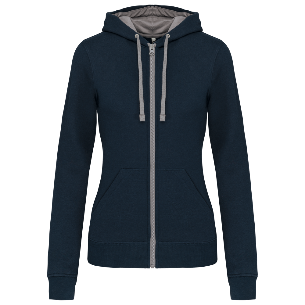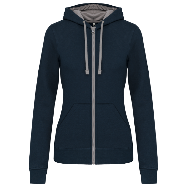 K467 - Felpa donna con cappuccio a contrasto full zip