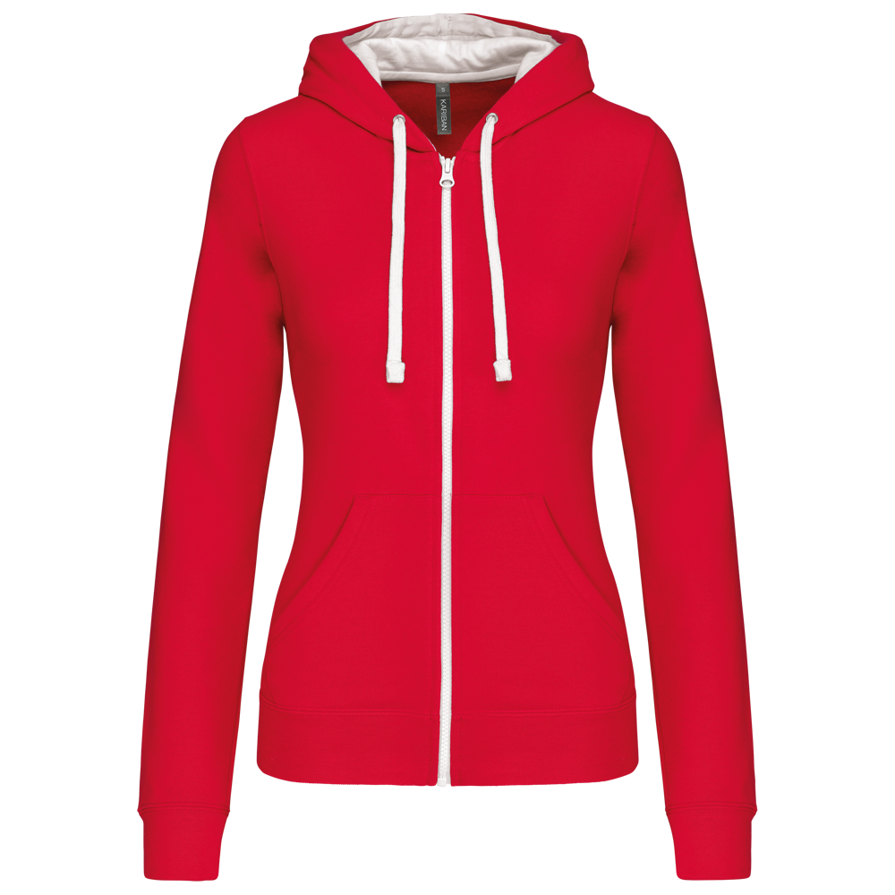 K467 - Felpa donna con cappuccio a contrasto full zip