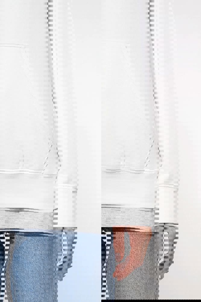 80% cotone / 20% poliestere. Cotone pettinato. Felpa garzata. Tasca a marsupio con accesso per... altro