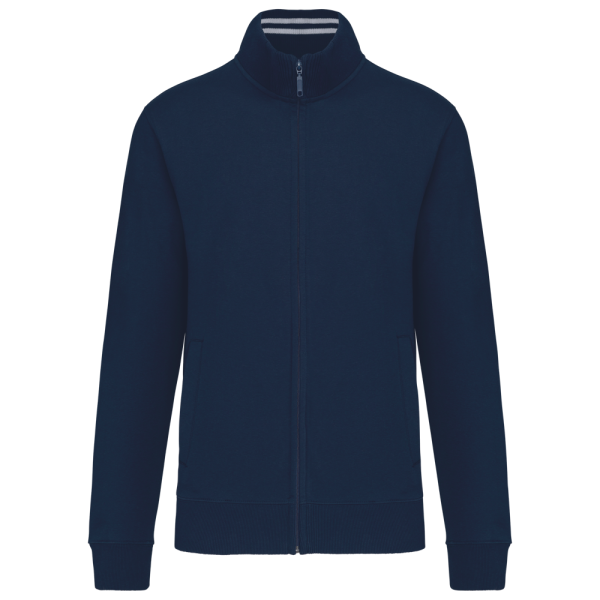 80% cotone / 20% poliestere. Cotone petinato. Tessuto spazzolato LSF a basso restringimento. Lavaggio al silicone. Taglio dritto con pannelli laterali a coste. Nastrino di rinforzo al collo in contrasto di colore (Contrasto in colore Bianco per tutte le varianti colore, eccetto per la variante Bianco dove il contrasto è nel colore Oxford Grey). Interno collo in costina in contrasto. 2 tasche frontali. Polsini e orlo in costina. Cerniera lampo.