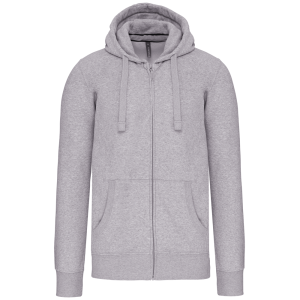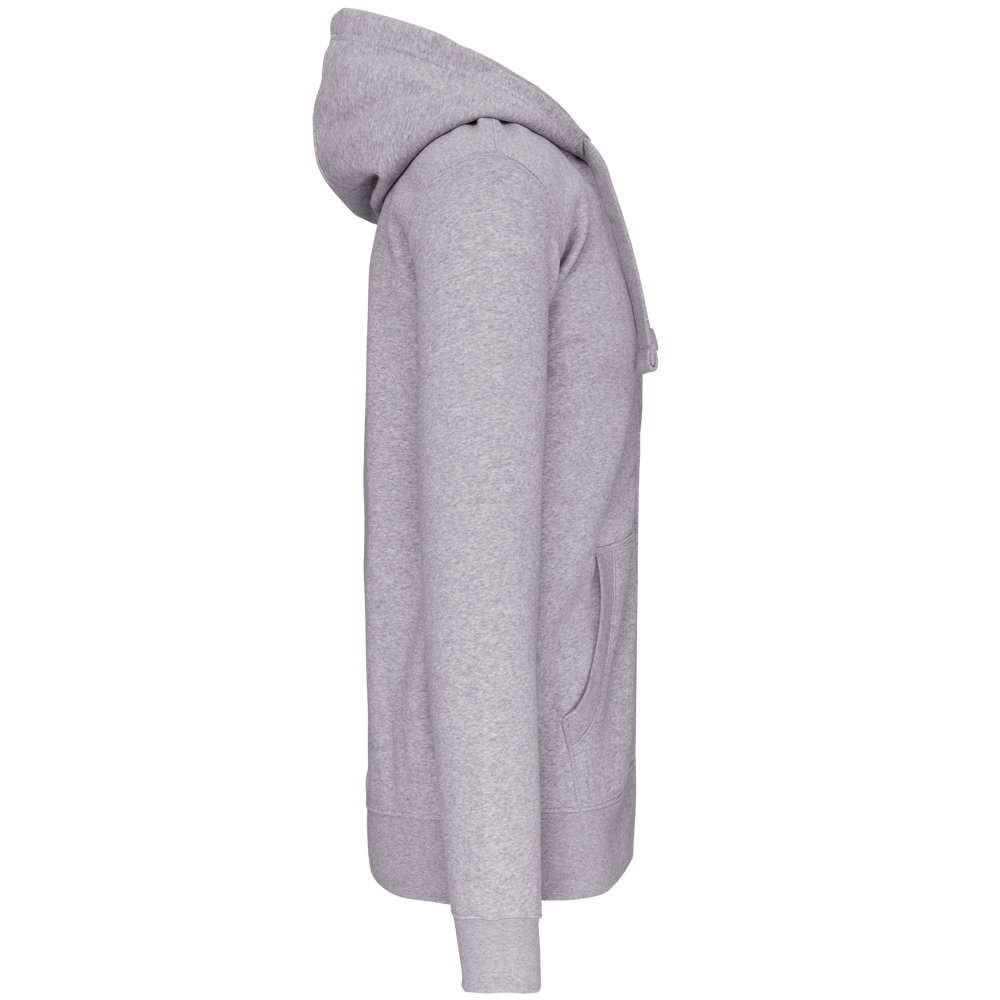 80% cotone / 20% poliestere (Ash Heather : 79% cotone / 20% poliestere / 1% viscosa). Cotone pettinato. Superficie esterna 100% cotone. Felpa garzata. Nastrino di rinforzo al collo in contrasto di colore (Contrasto in colore Oxford Grey per tutte le varianti colore, escluso per la variante Oxford Grey e Ash Heather dove il contrasto è nel colore Navy). Cappuccio foderato con cordoncino. Tasca a marsupio. Costine sulla tasca, polsini e girovita. Zip.