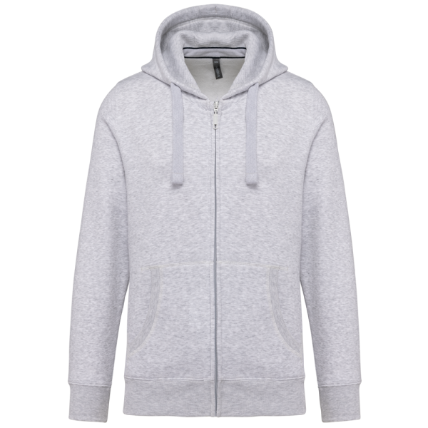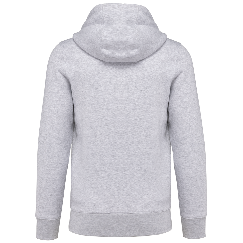 80% cotone / 20% poliestere (Ash Heather : 79% cotone / 20% poliestere / 1% viscosa). Cotone pettinato. Superficie esterna 100% cotone. Felpa garzata. Nastrino di rinforzo al collo in contrasto di colore (Contrasto in colore Oxford Grey per tutte le varianti colore, escluso per la variante Oxford Grey e Ash Heather dove il contrasto è nel colore Navy). Cappuccio foderato con cordoncino. Tasca a marsupio. Costine sulla tasca, polsini e girovita. Zip.