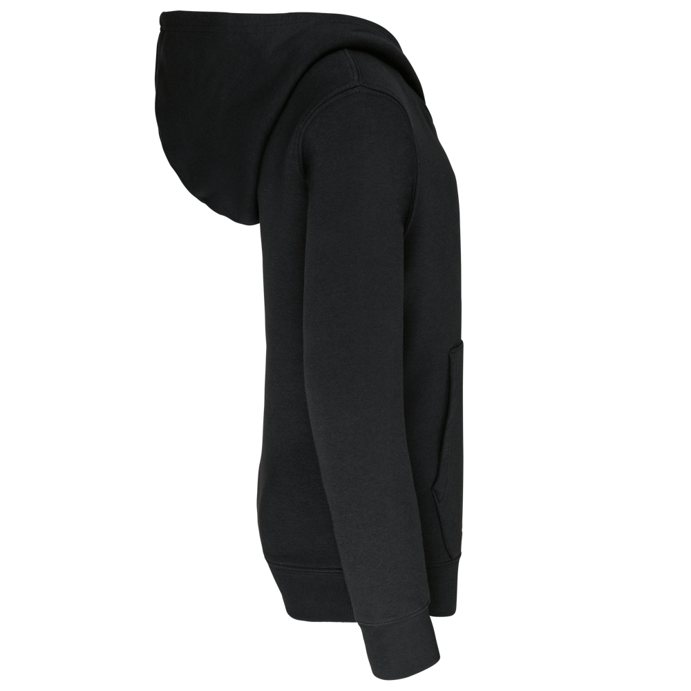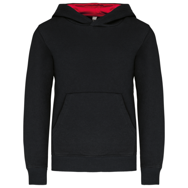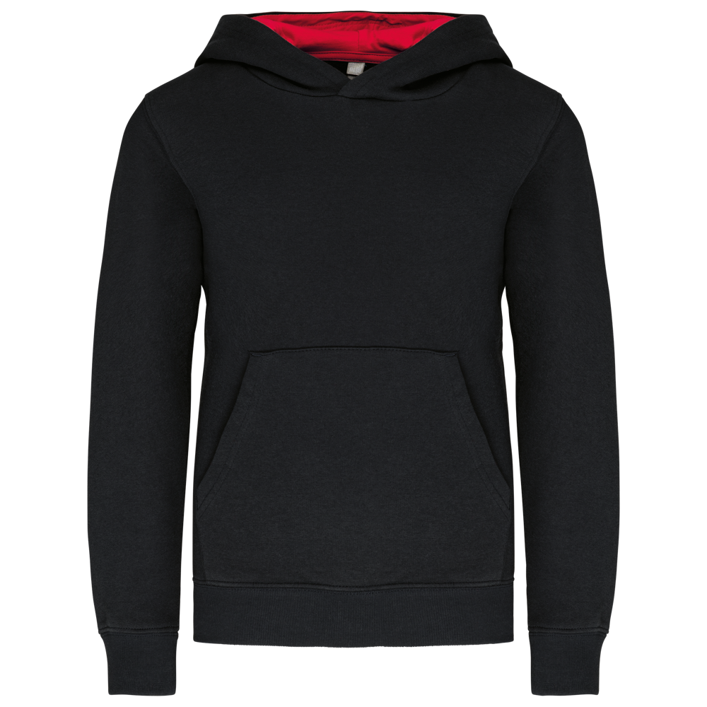 80% cotone / 20% poliestere. Cotone pettinato. Felpa garzata. Tasca a marsupio con accesso per auricolari. Polsini e girovita in costina. Cappuccio a contrasto foderato.