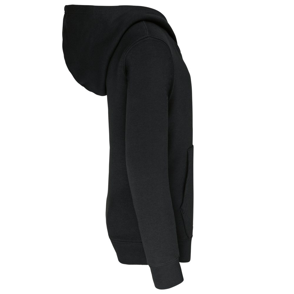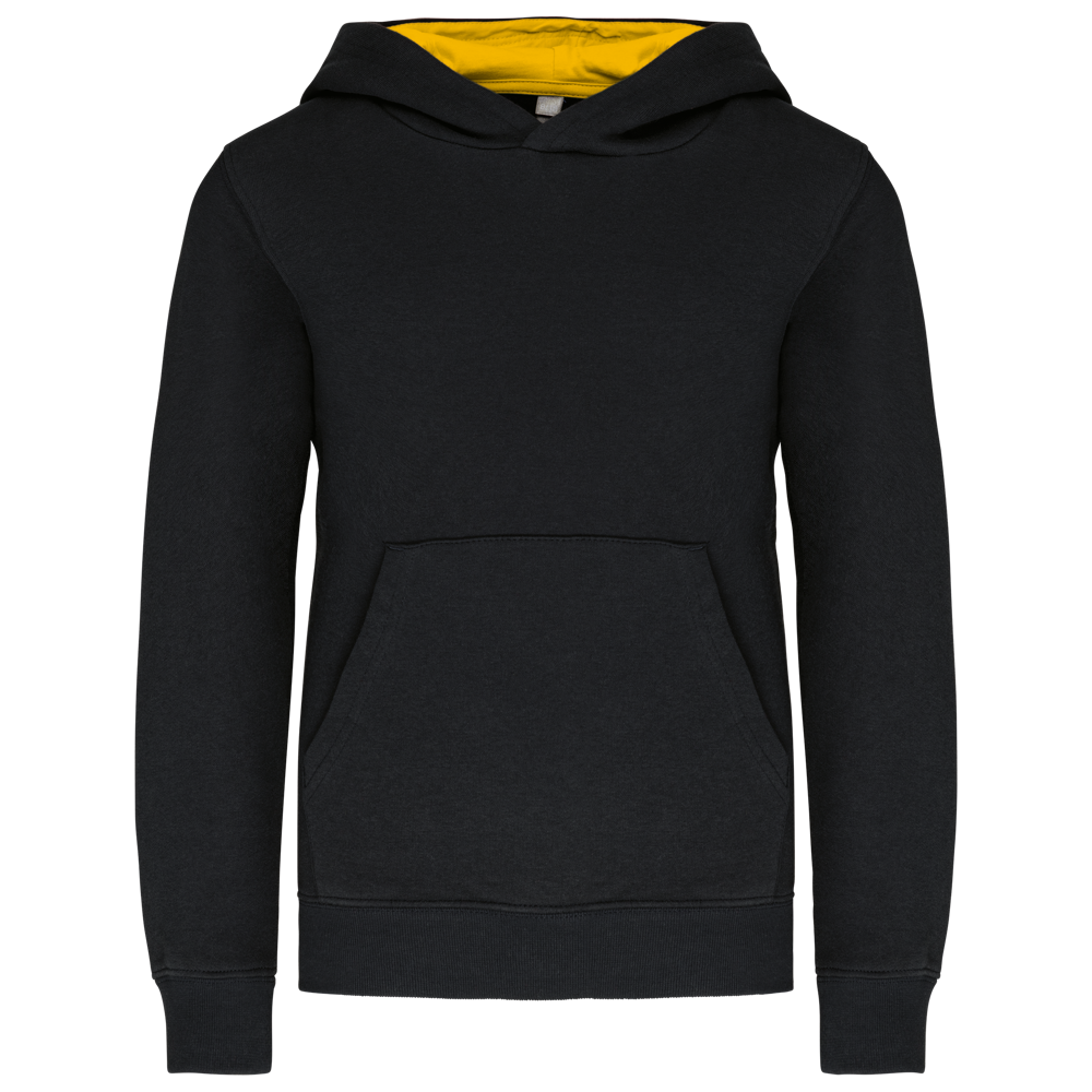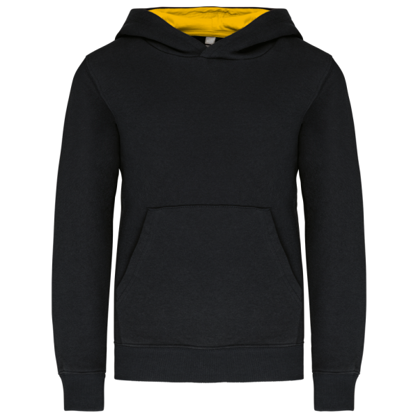 80% cotone / 20% poliestere. Cotone pettinato. Felpa garzata. Tasca a marsupio con accesso per auricolari. Polsini e girovita in costina. Cappuccio a contrasto foderato.