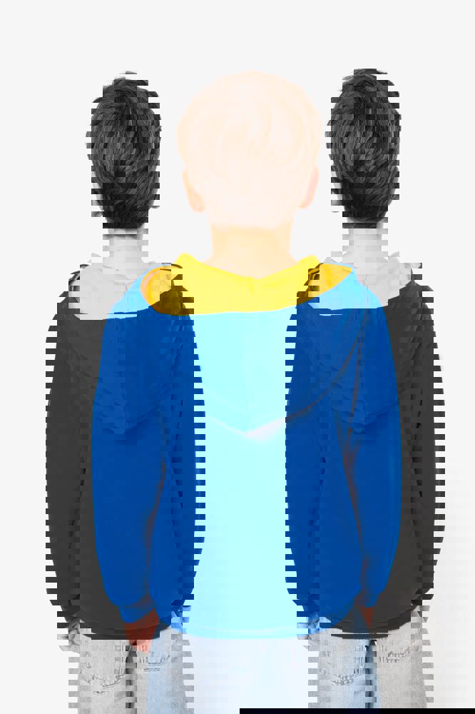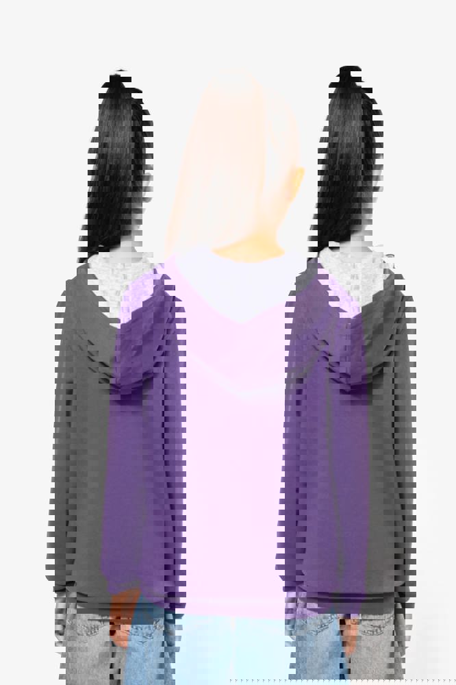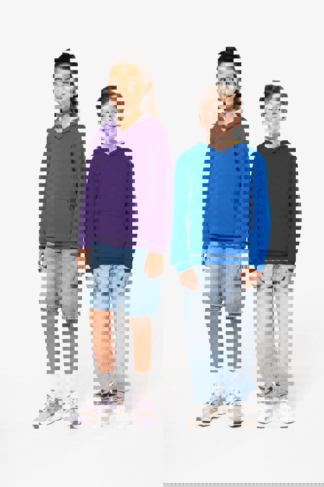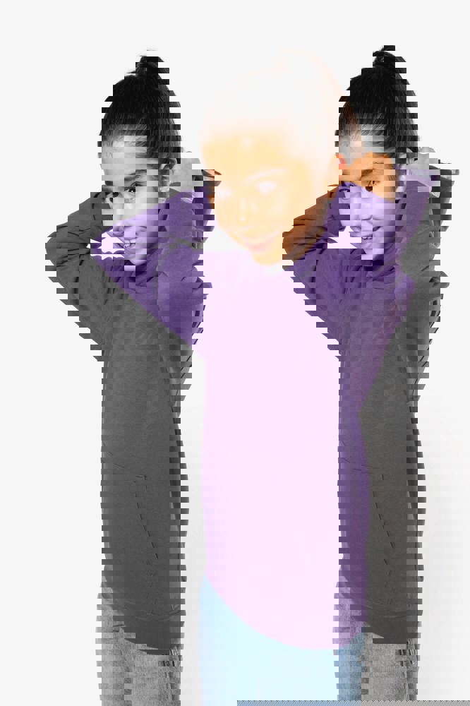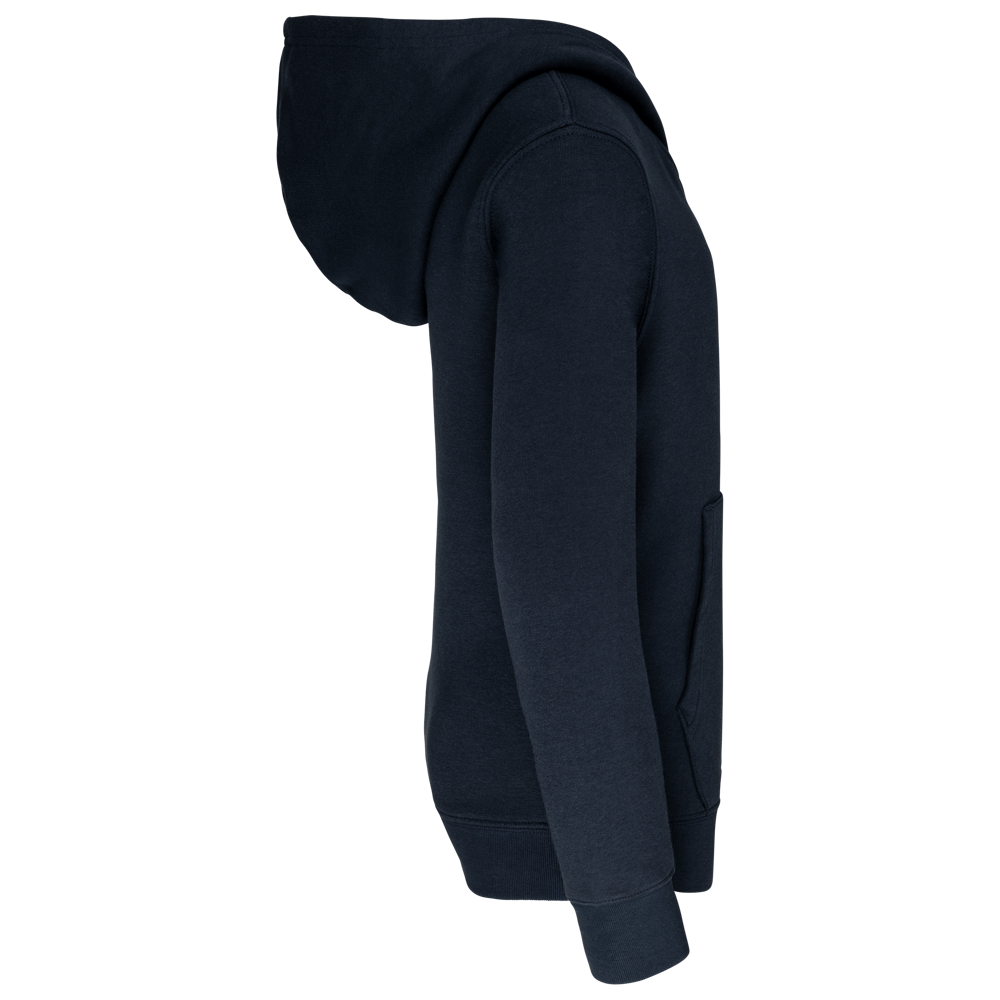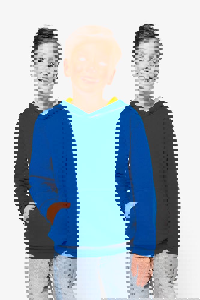 80% cotone / 20% poliestere. Cotone pettinato. Felpa garzata. Tasca a marsupio con accesso per auricolari. Polsini e girovita in costina. Cappuccio a contrasto foderato.