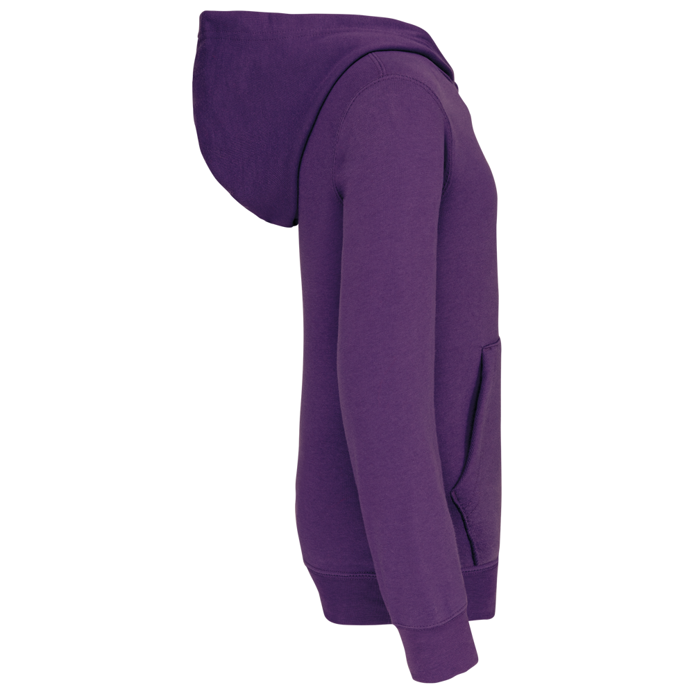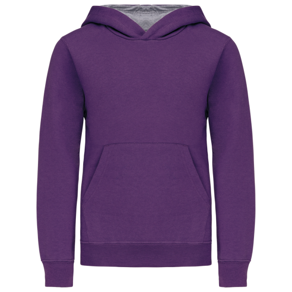 80% cotone / 20% poliestere. Cotone pettinato. Felpa garzata. Tasca a marsupio con accesso per auricolari. Polsini e girovita in costina. Cappuccio a contrasto foderato.