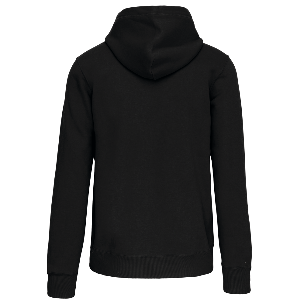 80% cotone / 20% poliestere. Cotone pettinato. Felpa garzata a basso restringimento. Lavaggio al Silicone. Nastrino di rinforzo in contrasto al collo. Interno cappuccio in contrasto. Tasche frontali a marsupio. Polsini e girovita in costina. Zip.