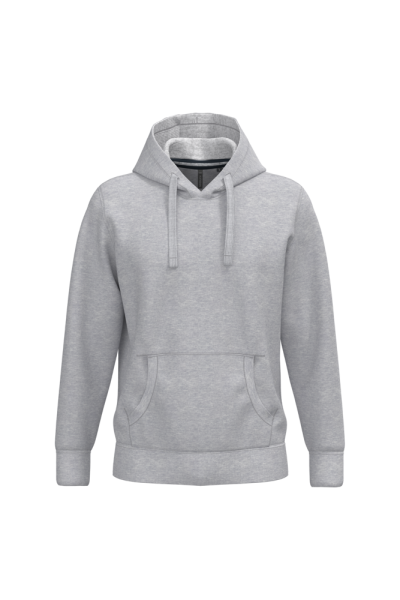80% cotone / 20% poliestere (Ash Heather : 79% cotone / 20% poliestere / 1% viscosa). Superficie esterna 100% cotone. Trattamento LSF (Low Shrinkage Fleece: felpa preristretta). Felpa garzata a 3 fili in cotone pettinato. Maniche a giro. Nastrino di rinforzo a contrasto sul collo (Contrasto in colore Oxford Grey per tutte le varianti colore, escluso per la variante Oxford Grey e Ash Heather dove il contrasto è nel colore Navy). Cappuccio foderato a nido d'ape con coulisse. Tasche a canguro. Polsini e fondo capo a costine.