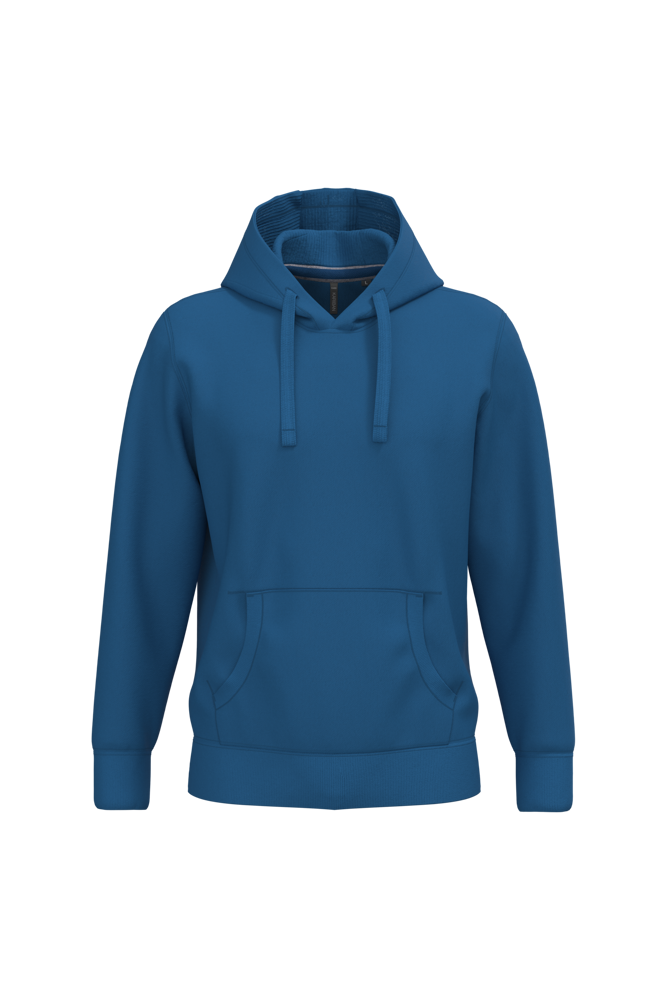 80% cotone / 20% poliestere (Ash Heather : 79% cotone / 20% poliestere / 1% viscosa). Superficie esterna 100% cotone. Trattamento LSF (Low Shrinkage Fleece: felpa preristretta). Felpa garzata a 3 fili in cotone pettinato. Maniche a giro. Nastrino di rinforzo a contrasto sul collo (Contrasto in colore Oxford Grey per tutte le varianti colore, escluso per la variante Oxford Grey e Ash Heather dove il contrasto è nel colore Navy). Cappuccio foderato a nido d'ape con coulisse. Tasche a canguro. Polsini e fondo capo a costine.