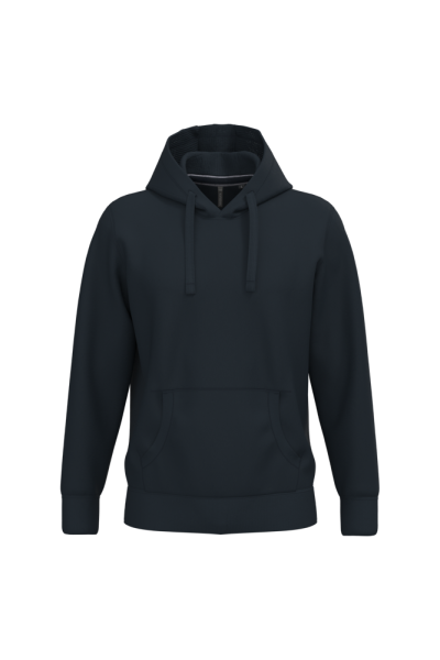 80% cotone / 20% poliestere (Ash Heather : 79% cotone / 20% poliestere / 1% viscosa). Superficie esterna 100% cotone. Trattamento LSF (Low Shrinkage Fleece: felpa preristretta). Felpa garzata a 3 fili in cotone pettinato. Maniche a giro. Nastrino di rinforzo a contrasto sul collo (Contrasto in colore Oxford Grey per tutte le varianti colore, escluso per la variante Oxford Grey e Ash Heather dove il contrasto è nel colore Navy). Cappuccio foderato a nido d'ape con coulisse. Tasche a canguro. Polsini e fondo capo a costine.