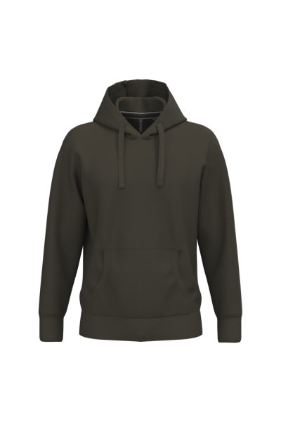 80% cotone / 20% poliestere (Ash Heather : 79% cotone / 20% poliestere / 1% viscosa). Superficie esterna 100% cotone. Trattamento LSF (Low Shrinkage Fleece: felpa preristretta). Felpa garzata a 3 fili in cotone pettinato. Maniche a giro. Nastrino di rinforzo a contrasto sul collo (Contrasto in colore Oxford Grey per tutte le varianti colore, escluso per la variante Oxford Grey e Ash Heather dove il contrasto è nel colore Navy). Cappuccio foderato a nido d'ape con coulisse. Tasche a canguro. Polsini e fondo capo a costine.