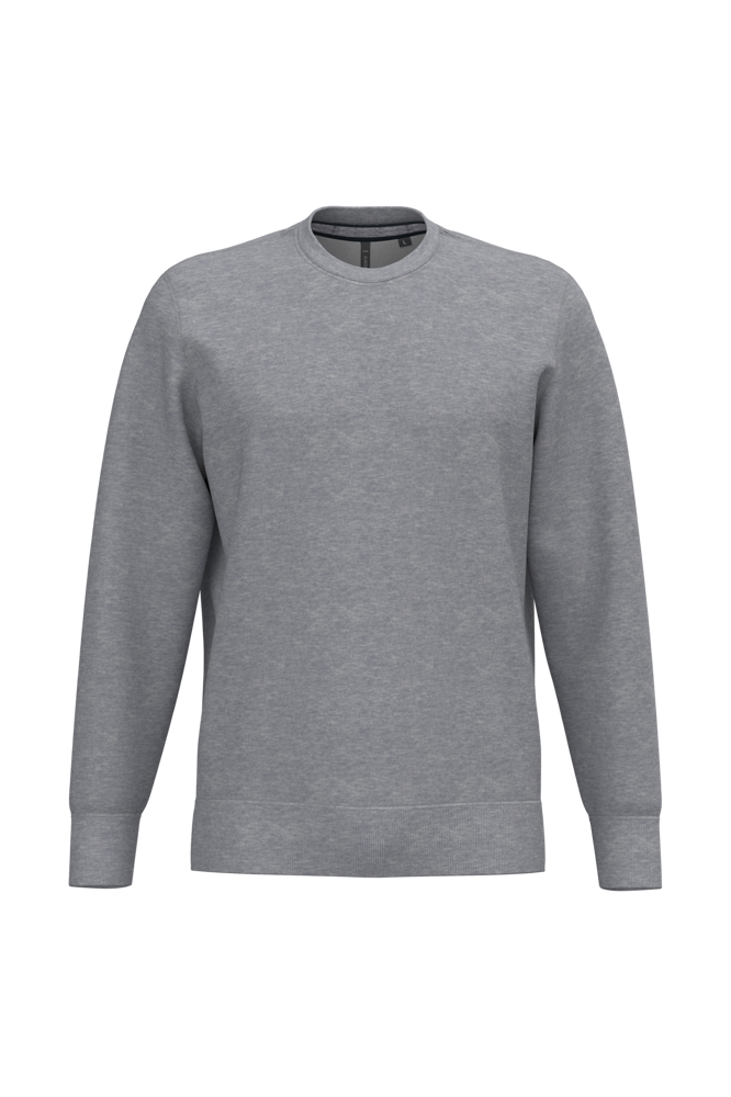 80% cotone / 20% poliestere (Ash Heather : 79% cotone / 20% poliestere / 1% viscosa). Superficie esterna 100% cotone. Trattamento LSF (Low Shrinkage Fleece: felpa preristretta). Felpa garzata a 3 fili in cotone pettinato. Maniche a giro. Nastrino di rinforzo a contrasto sul collo (Contrasto in colore Oxford Grey per tutte le varianti colore, escluso per la variante Oxford Grey e Ash Heather dove il contrasto è nel colore Navy). Polsini e fondo capo a costine.