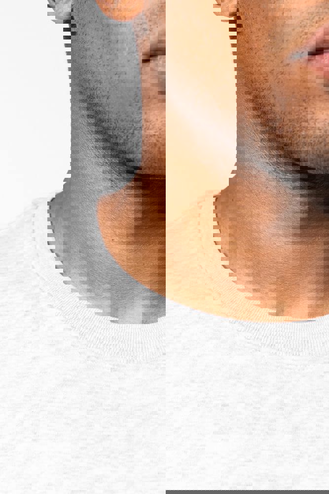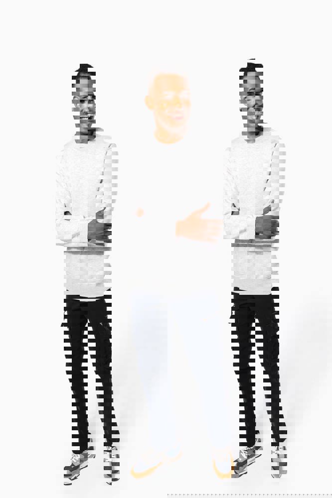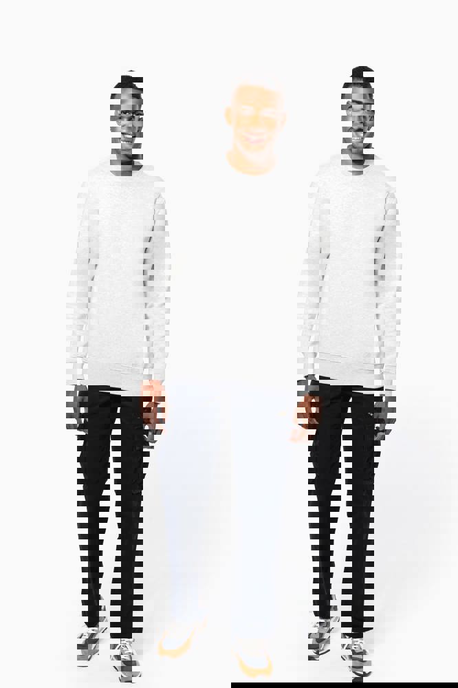 80% cotone / 20% poliestere (Ash Heather : 79% cotone / 20% poliestere / 1% viscosa). Superficie esterna 100% cotone. Trattamento LSF (Low Shrinkage Fleece: felpa preristretta). Felpa garzata a 3 fili in cotone pettinato. Maniche a giro. Nastrino di rinforzo a contrasto sul collo (Contrasto in colore Oxford Grey per tutte le varianti colore, escluso per la variante Oxford Grey e Ash Heather dove il contrasto è nel colore Navy). Polsini e fondo capo a costine.