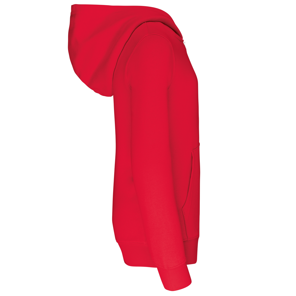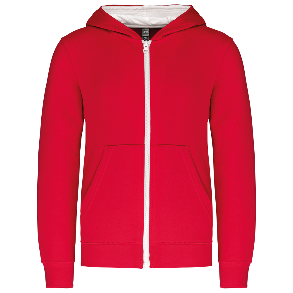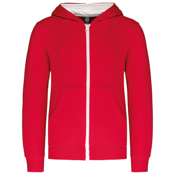 80% cotone pettinato / 20% poliestere. Felpa garzata. Fondo manica e fondo capo a costine. Cappuccio a contrasto e foderato. Zip a contrasto. Tasca a marsupio con accesso per auricolari.