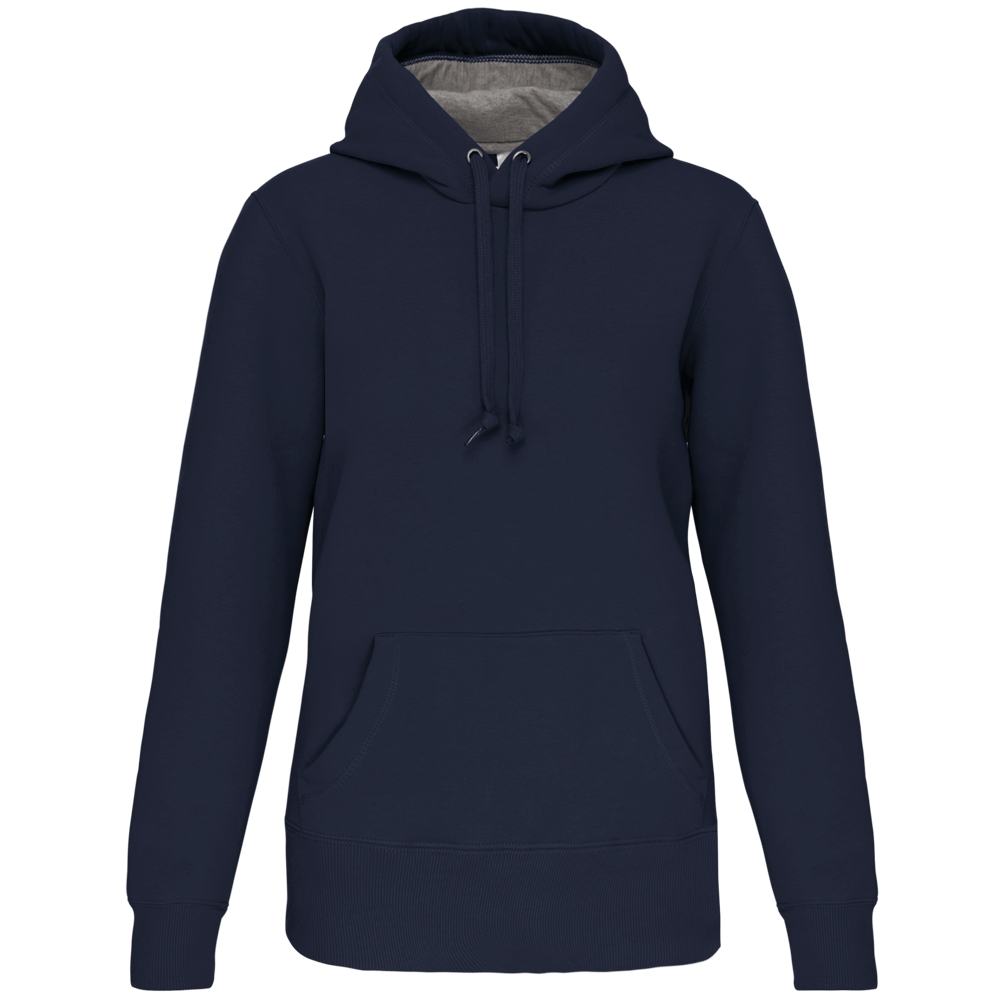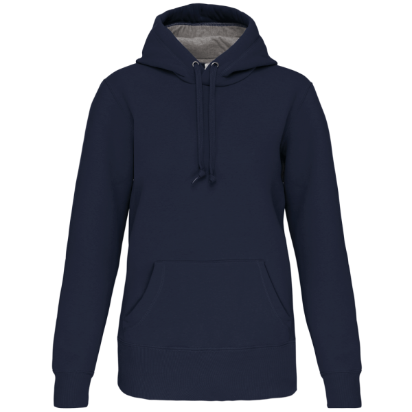 80% cotone / 20% poliestere. Cotone pettinato. Felpa garzata a basso restringimento. Lavaggio al silicone. Nastrino di rinforzo in contrasto al collo. Interno cappuccio in contrasto. Tasca frontale a marsupio. Polsini e girovita in costina.