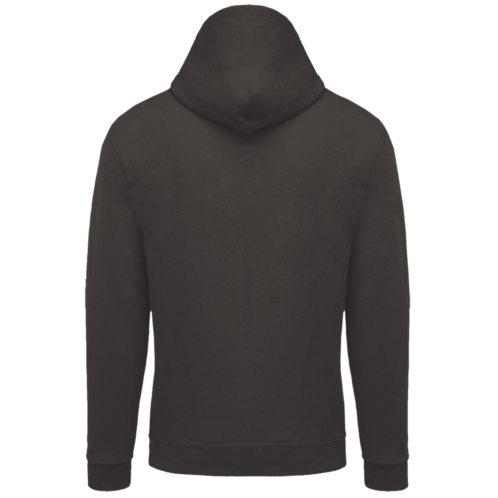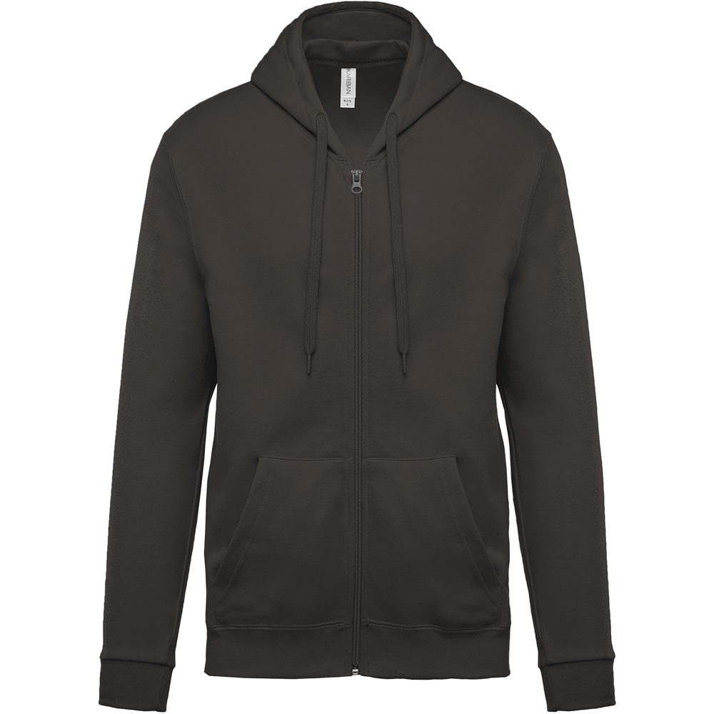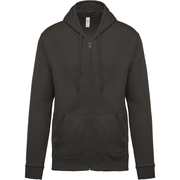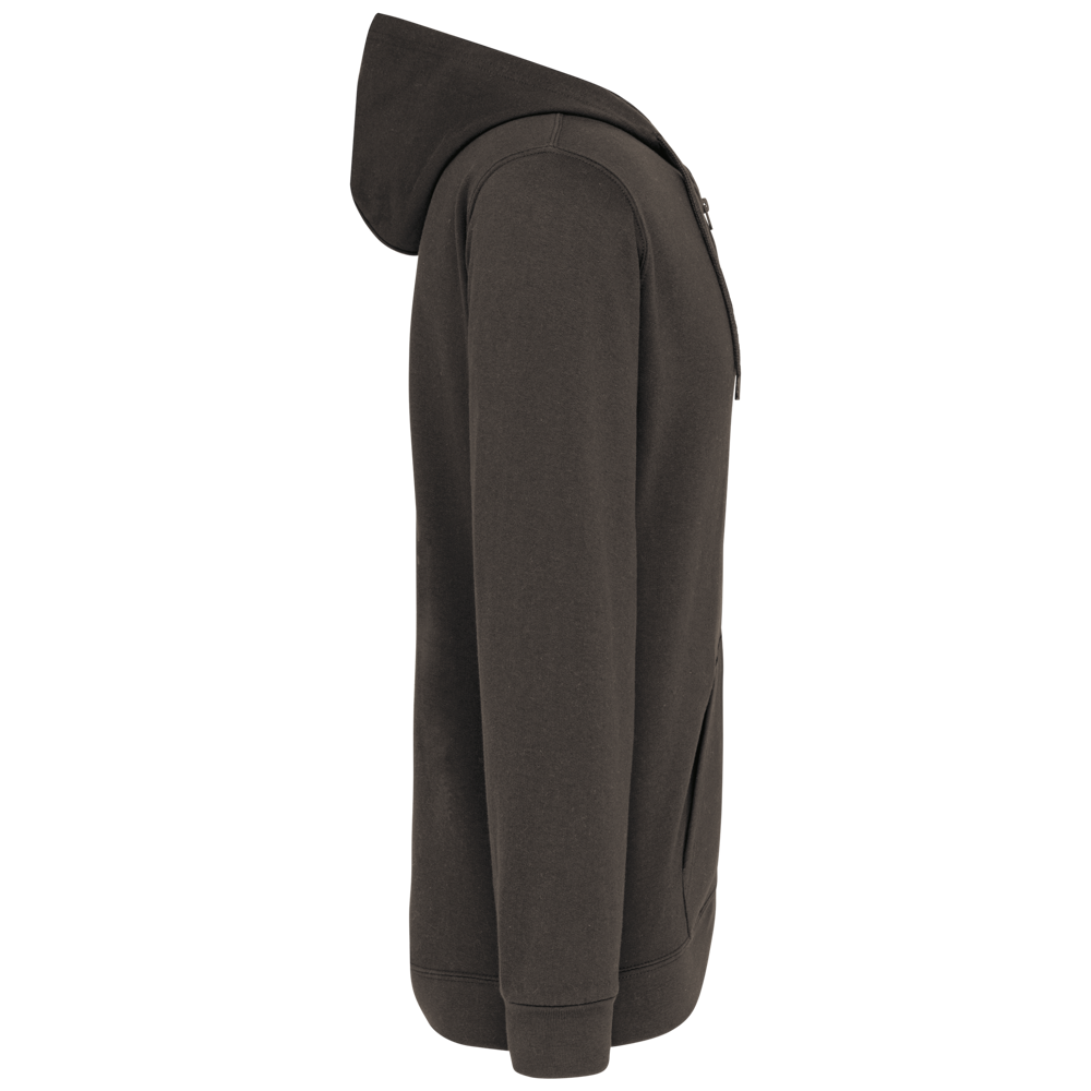80% cotone / 20% poliestere. Cotone pettinato. Felpa garzata. Maniche a giro. Zip in nylon. Cappuccio foderato con coulisse tono su tono. Tasche a canguro. Fondo manica e fondo capo a costine.