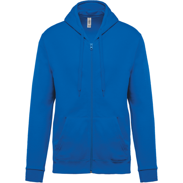 80% cotone / 20% poliestere. Cotone pettinato. Felpa garzata. Maniche a giro. Zip in nylon. Cappuccio foderato con coulisse tono su tono. Tasche a canguro. Fondo manica e fondo capo a costine.