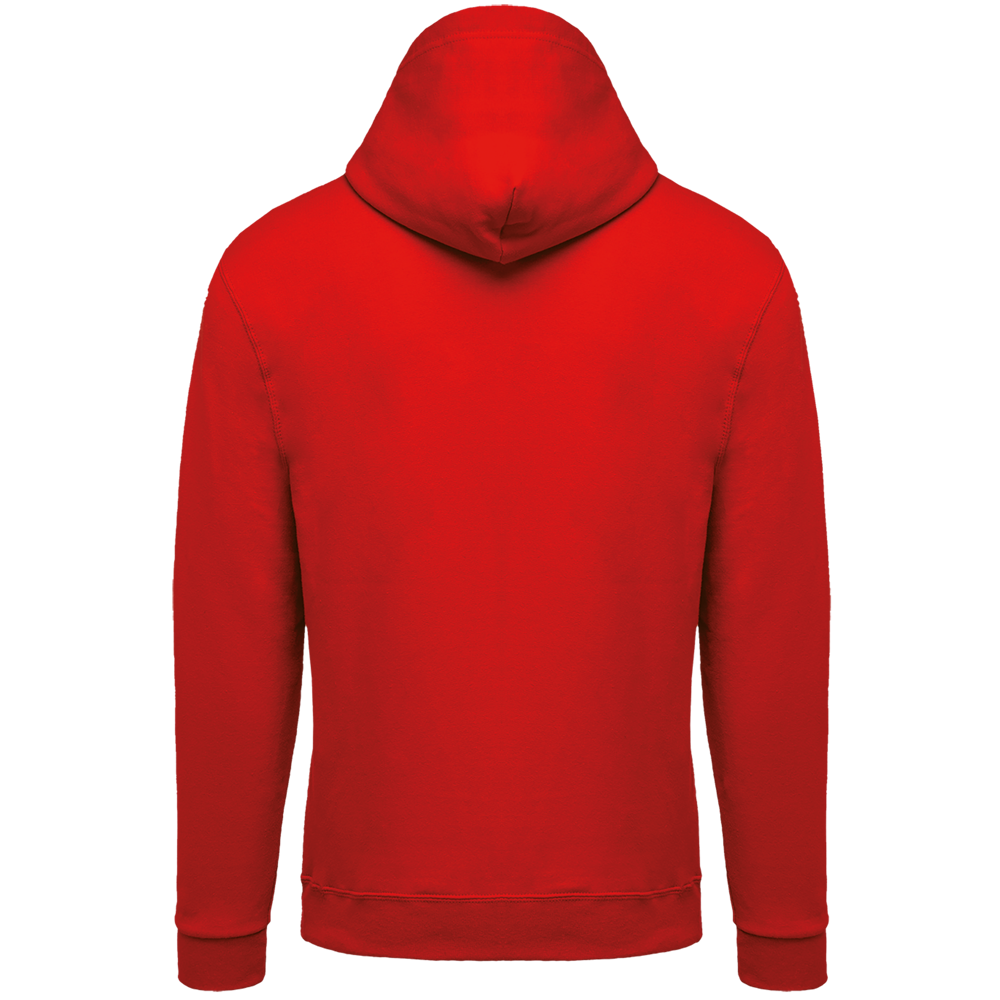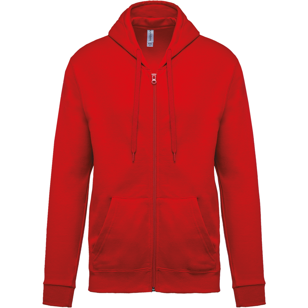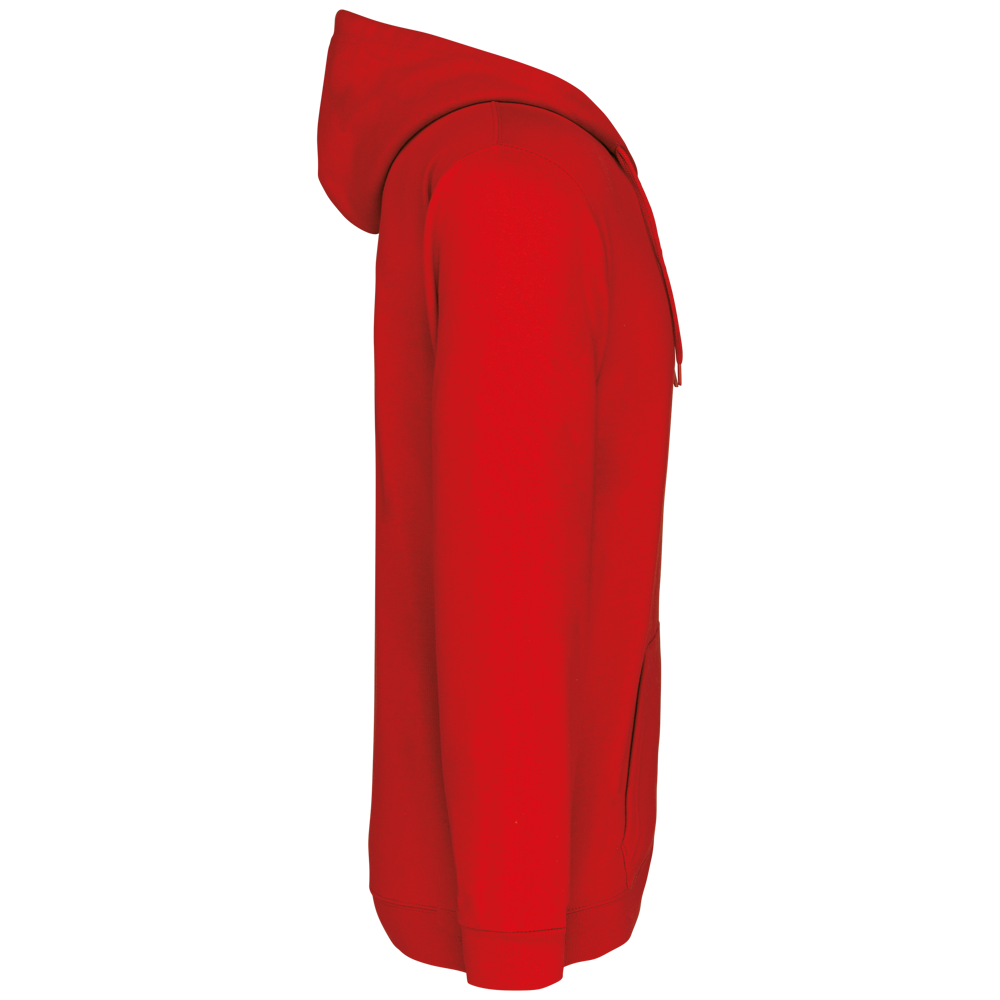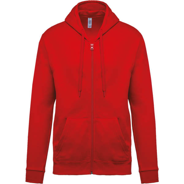 80% cotone / 20% poliestere. Cotone pettinato. Felpa garzata. Maniche a giro. Zip in nylon. Cappuccio foderato con coulisse tono su tono. Tasche a canguro. Fondo manica e fondo capo a costine.