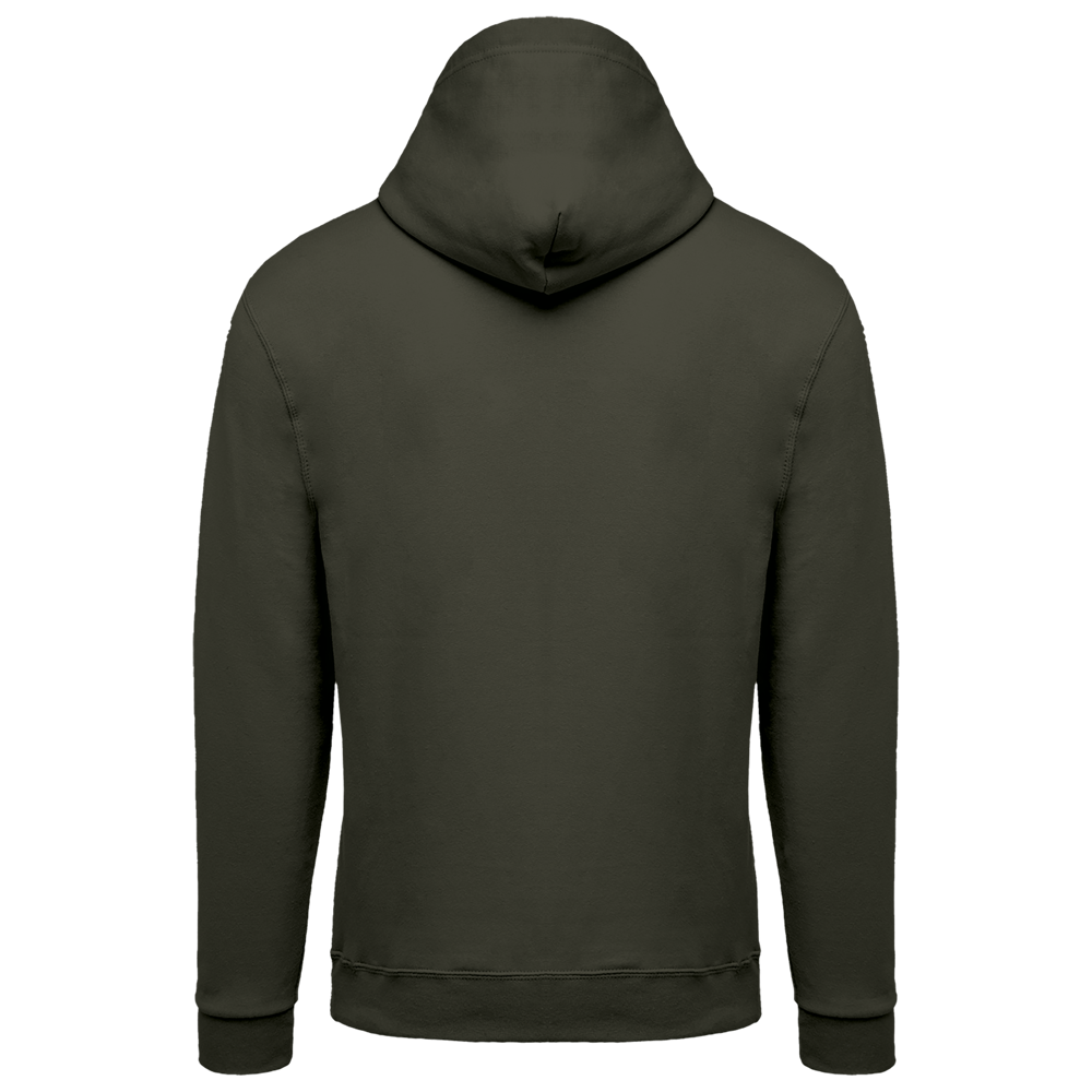 80% cotone / 20% poliestere. Cotone pettinato. Felpa garzata. Maniche a giro. Zip in nylon. Cappuccio foderato con coulisse tono su tono. Tasche a canguro. Fondo manica e fondo capo a costine.